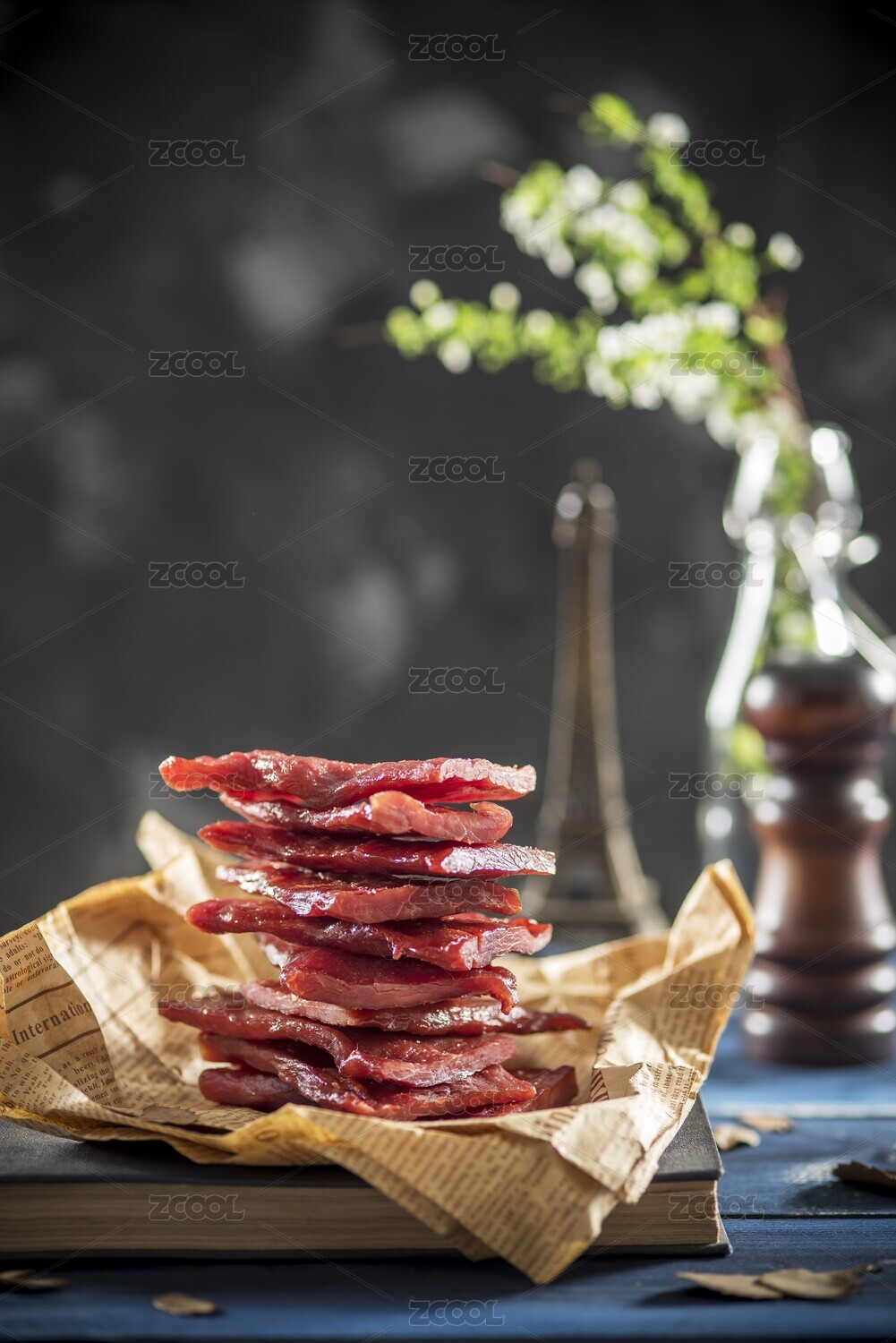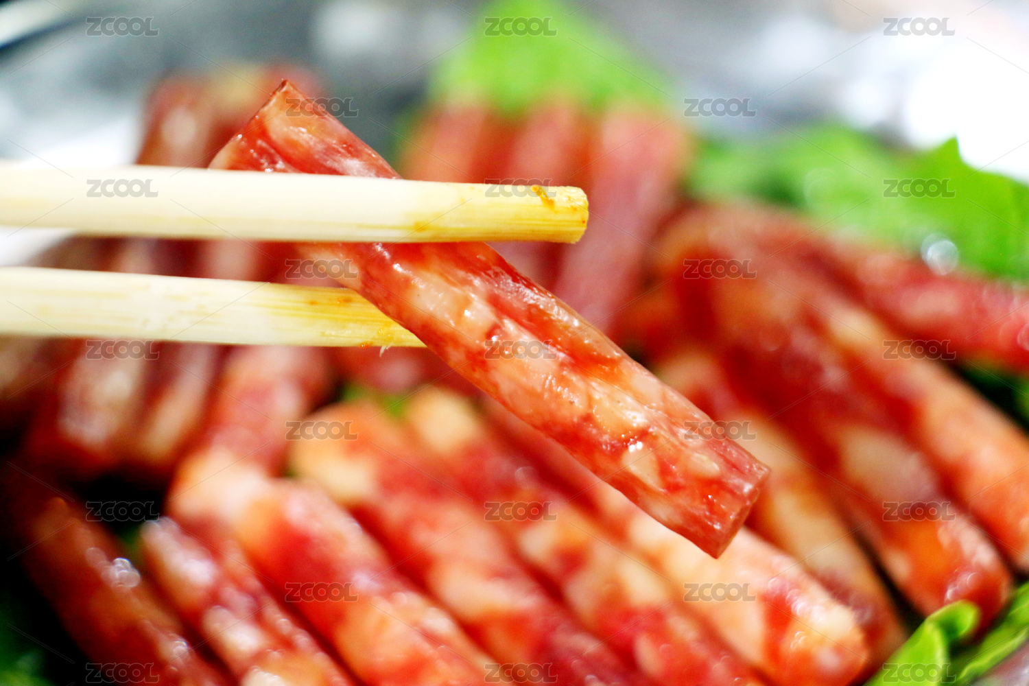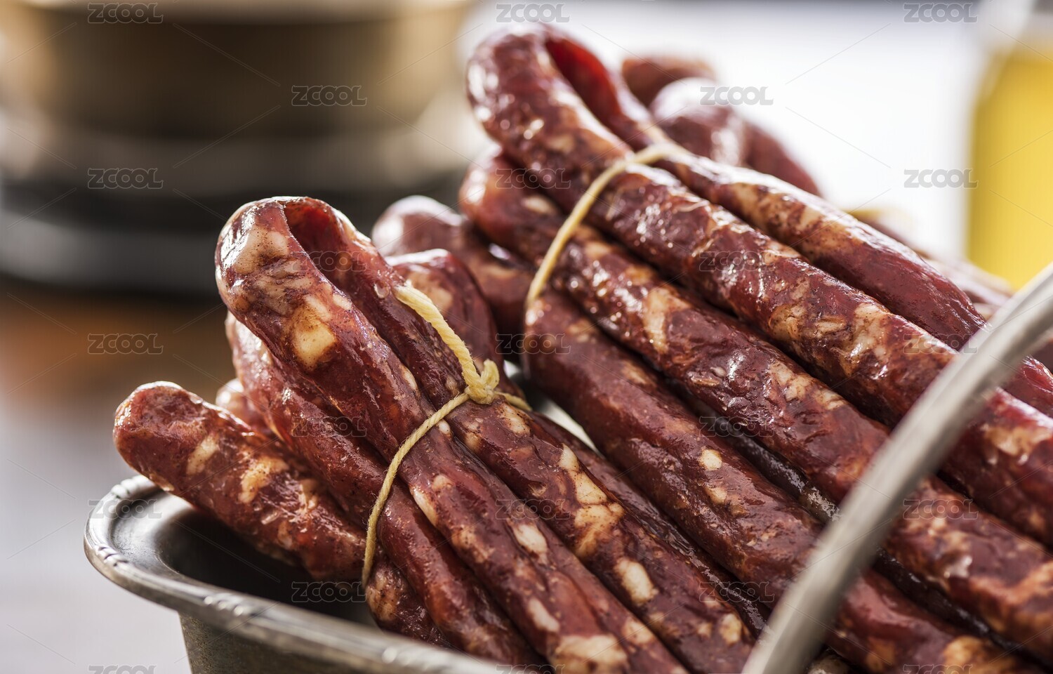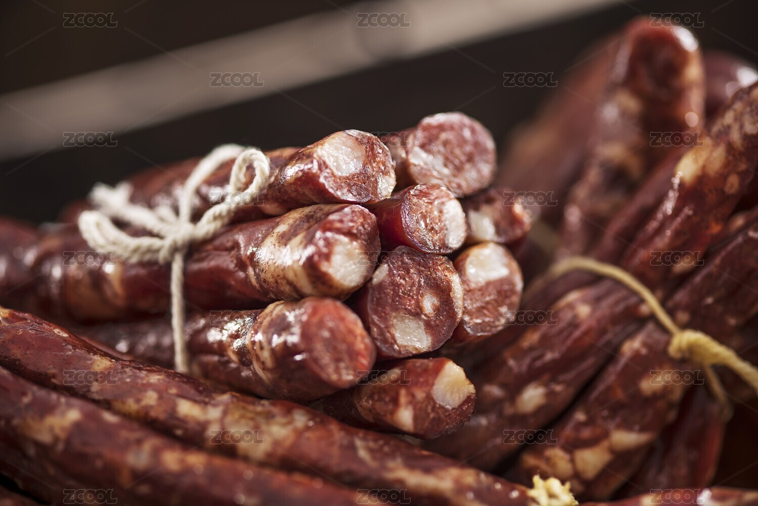 風(fēng)干腸特寫桌上切片擺盤
