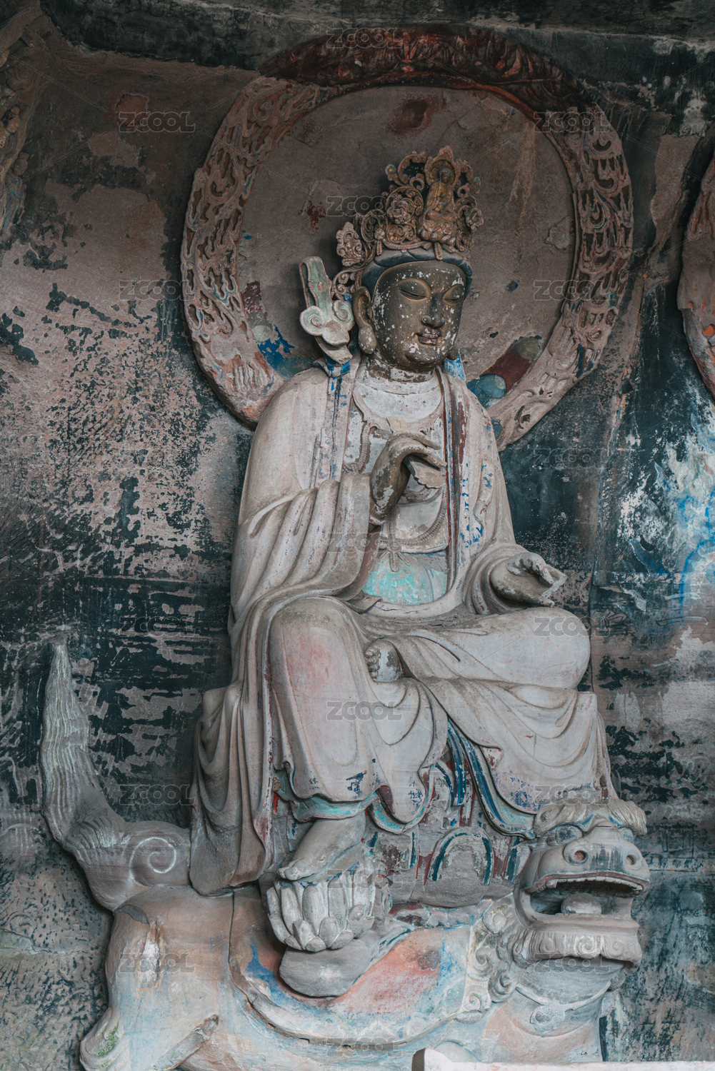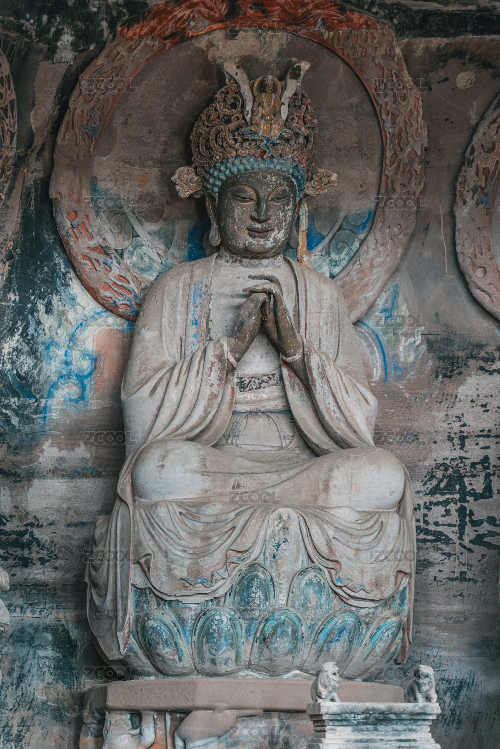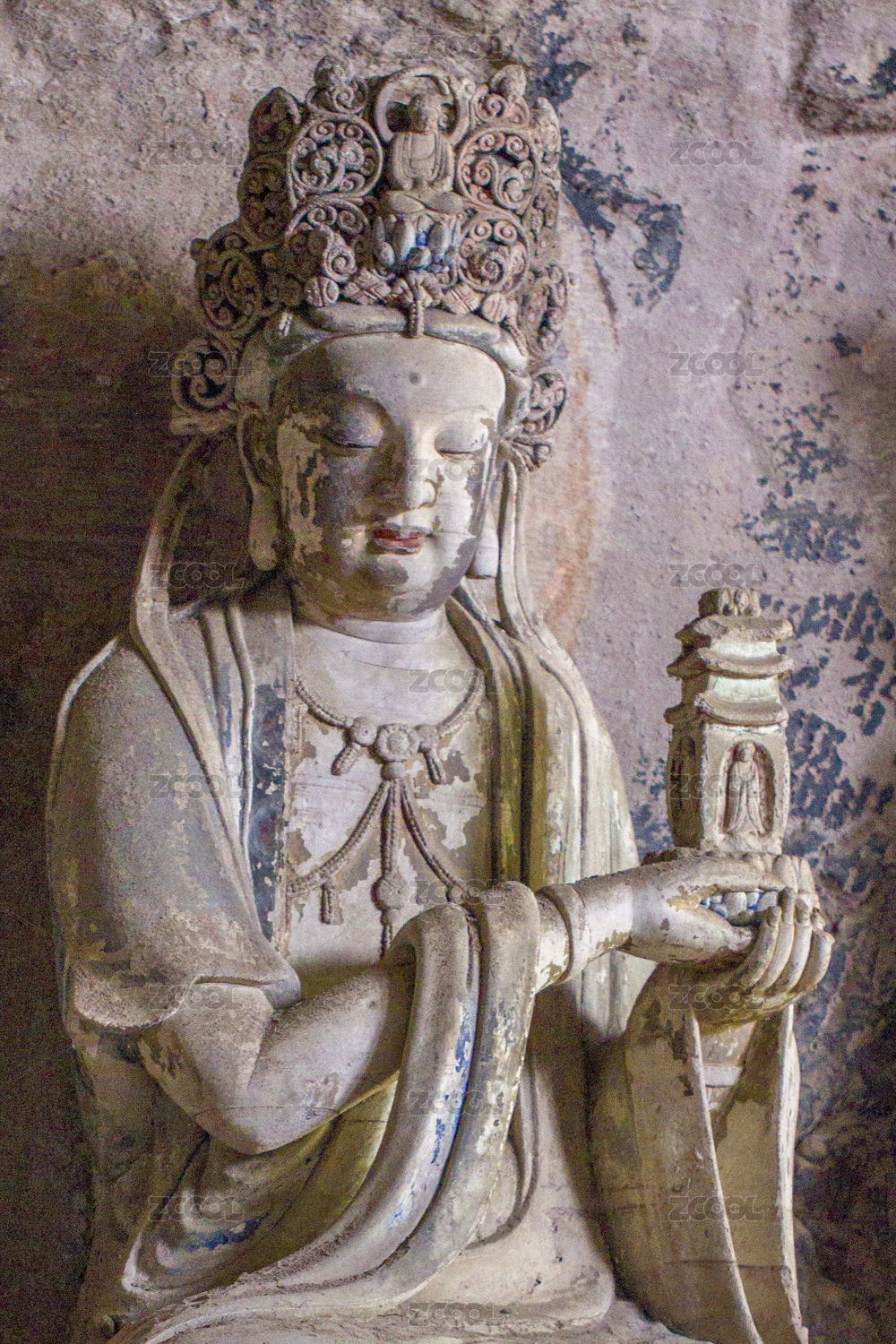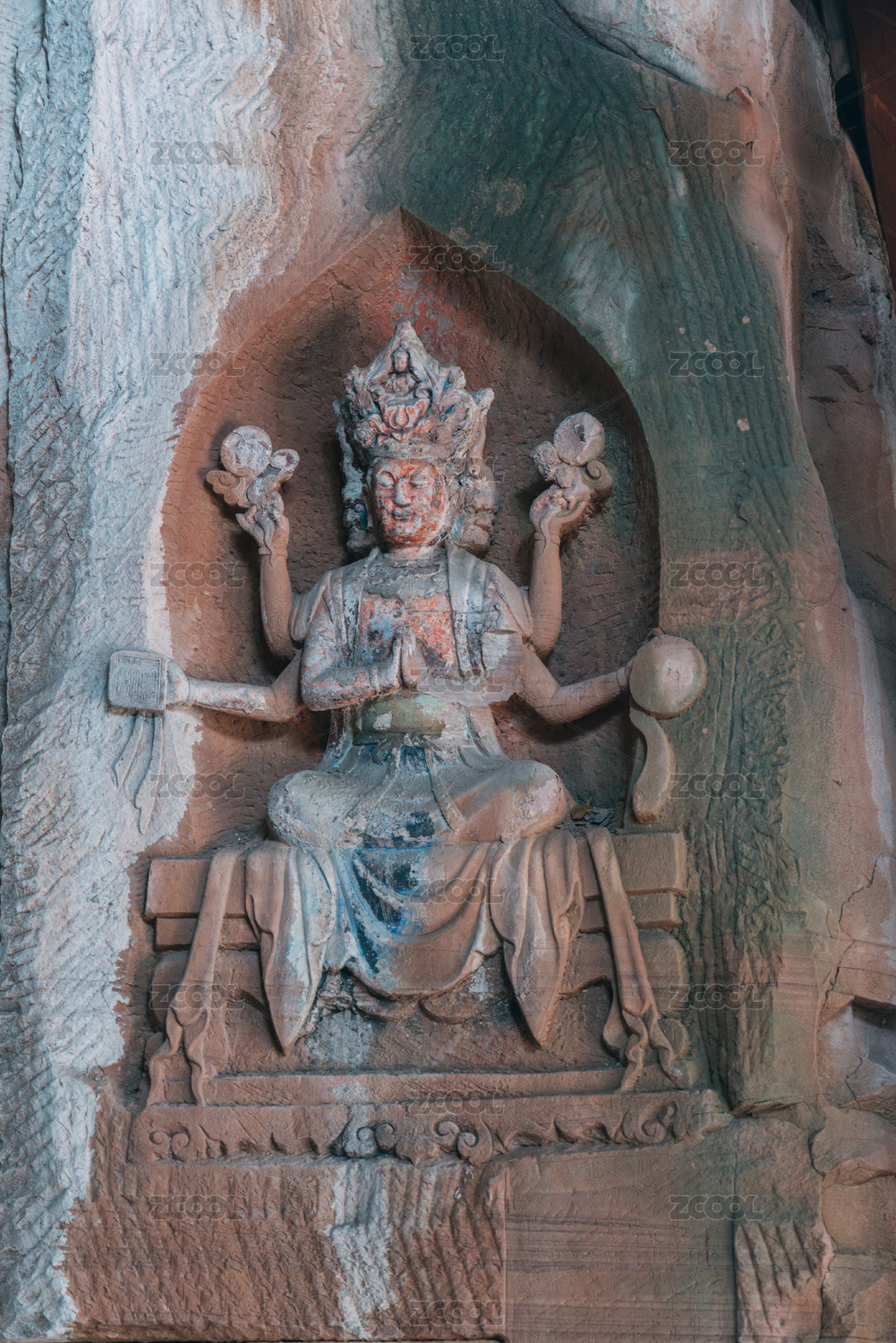 中國(guó)四川安岳華嚴(yán)洞雙手托塔的普覺(jué)菩薩