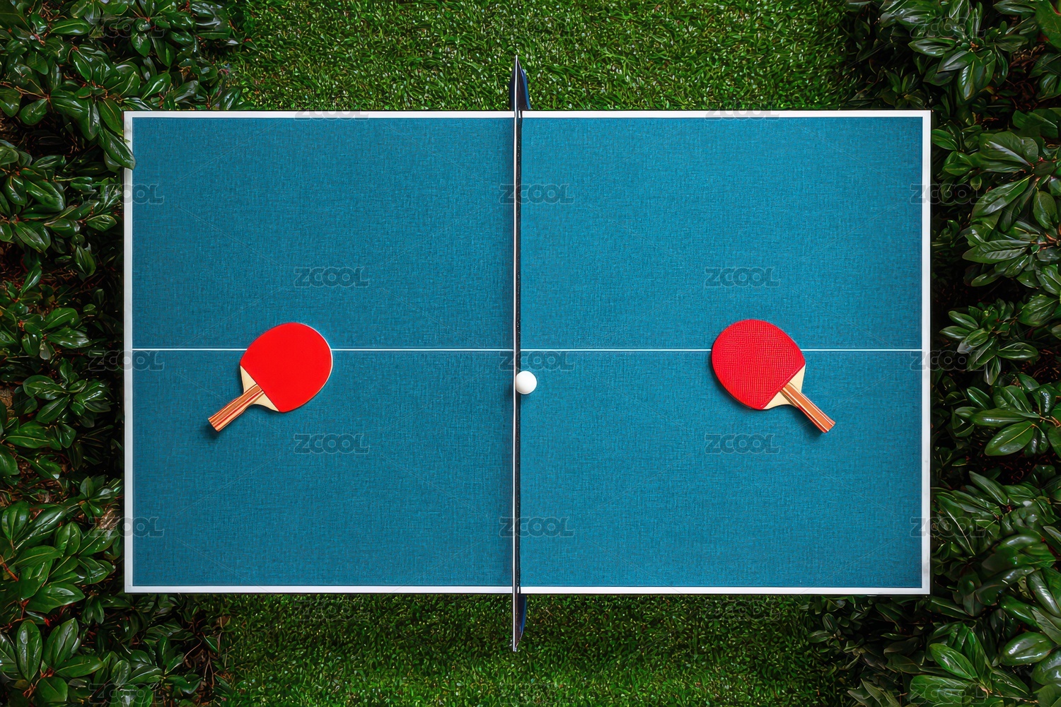 戶外草地上的乒乓球桌場景