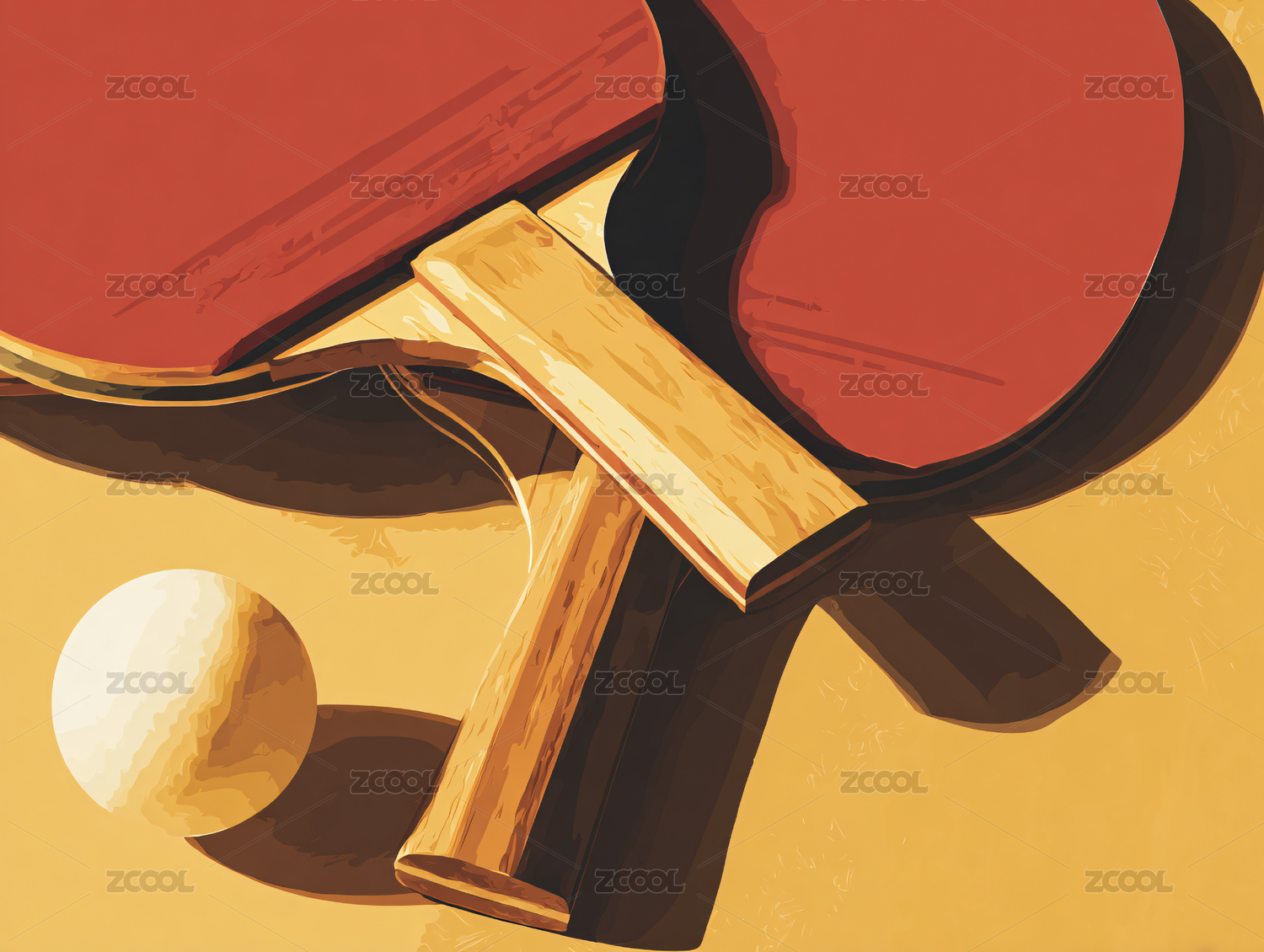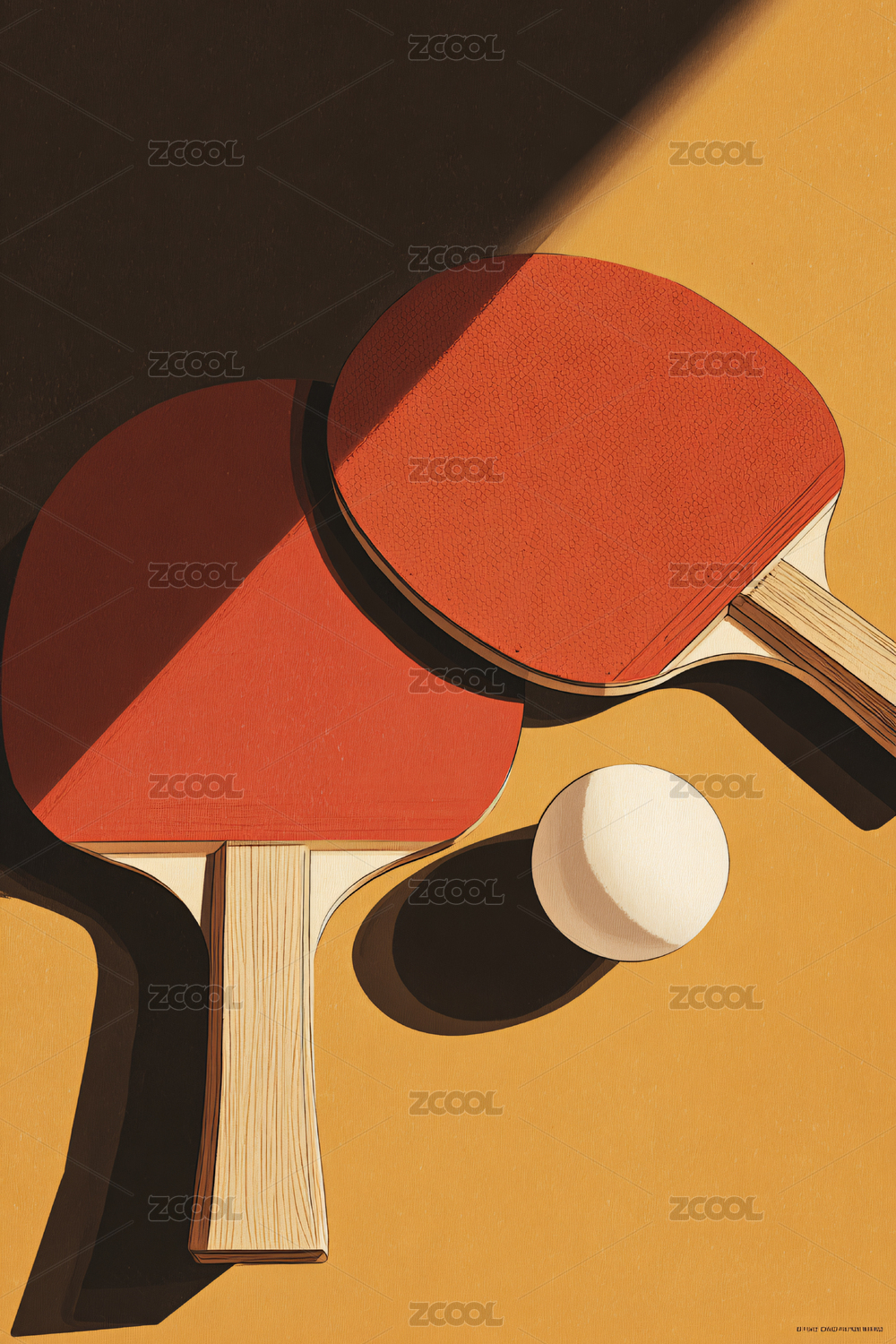 乒乓球與球拍的靜謐場景