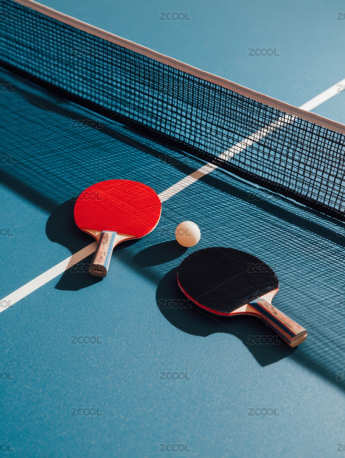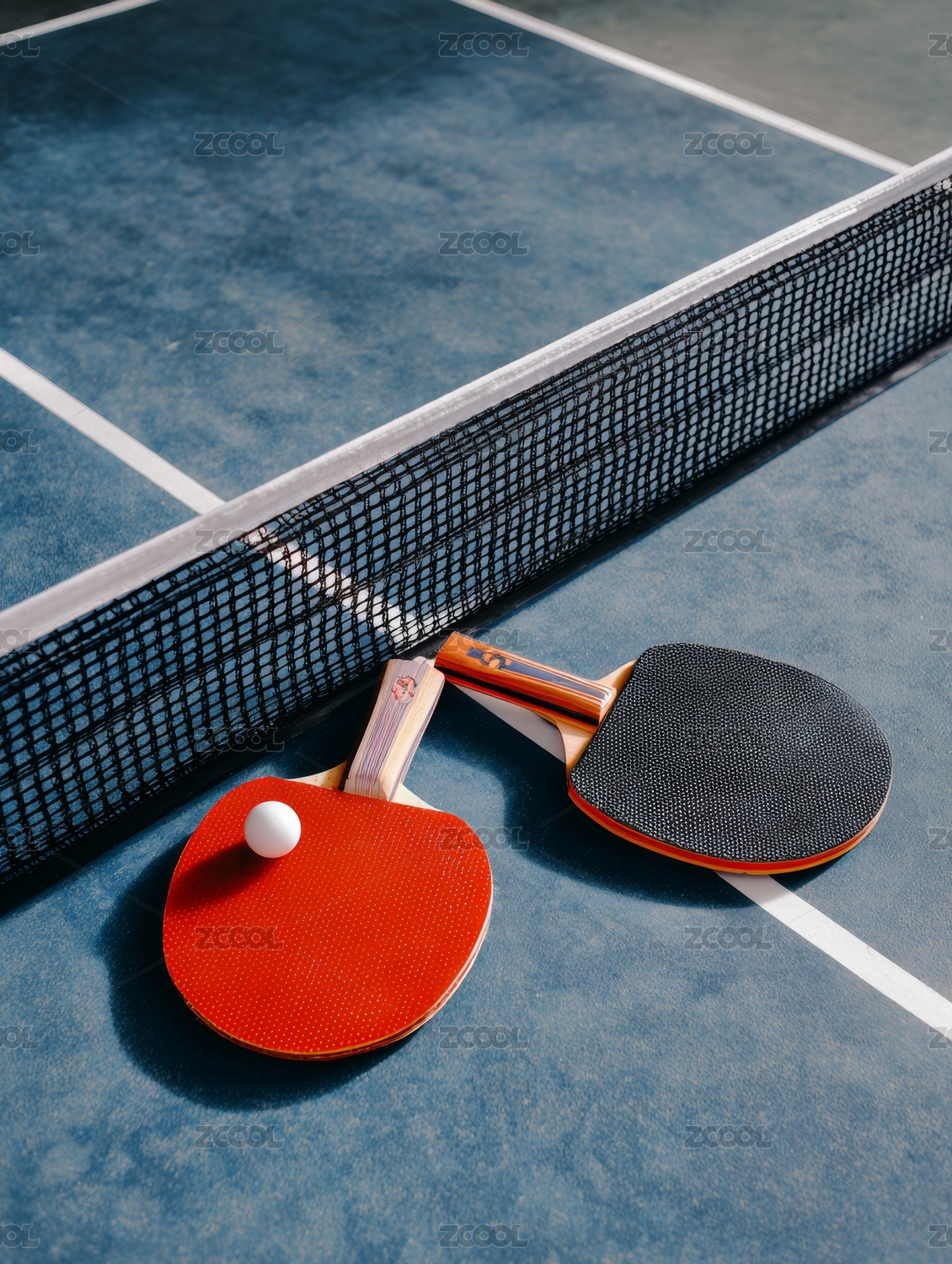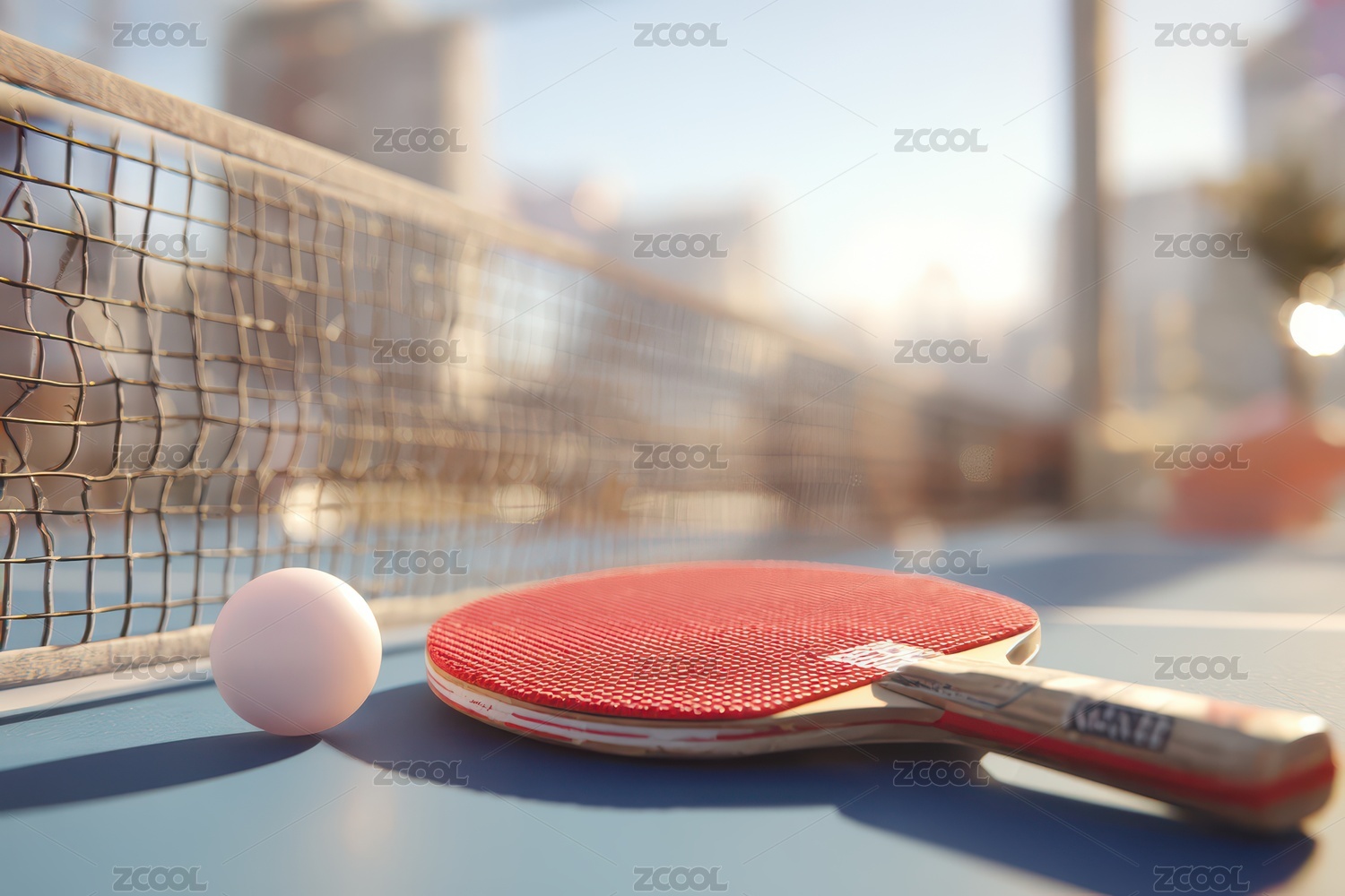 午后陽光照射下乒乓球桌面