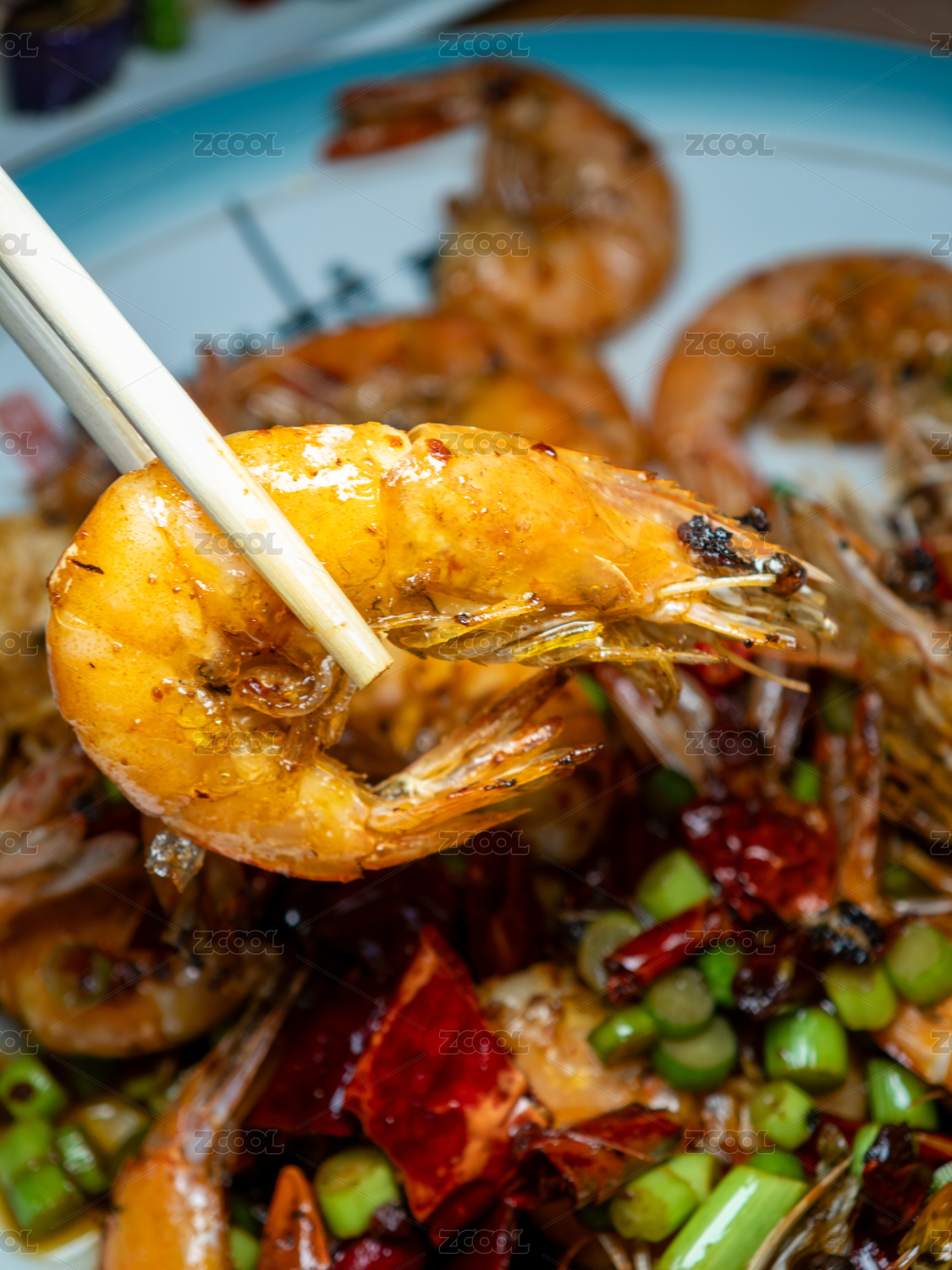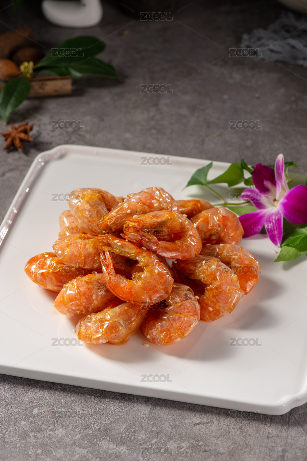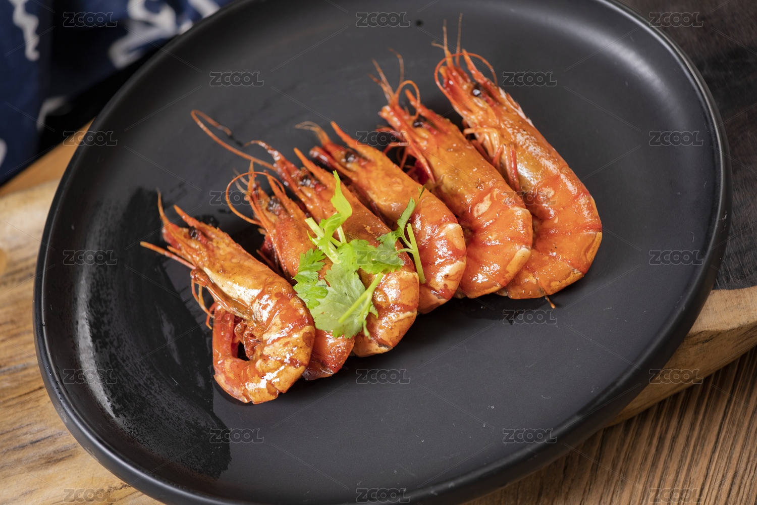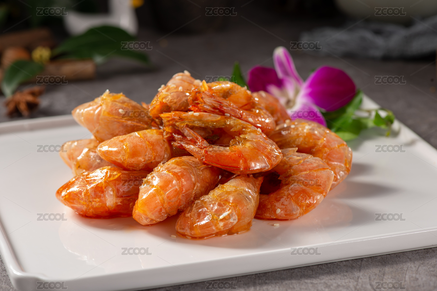 盤子里的元寶蝦干燒蝦炒蝦仁