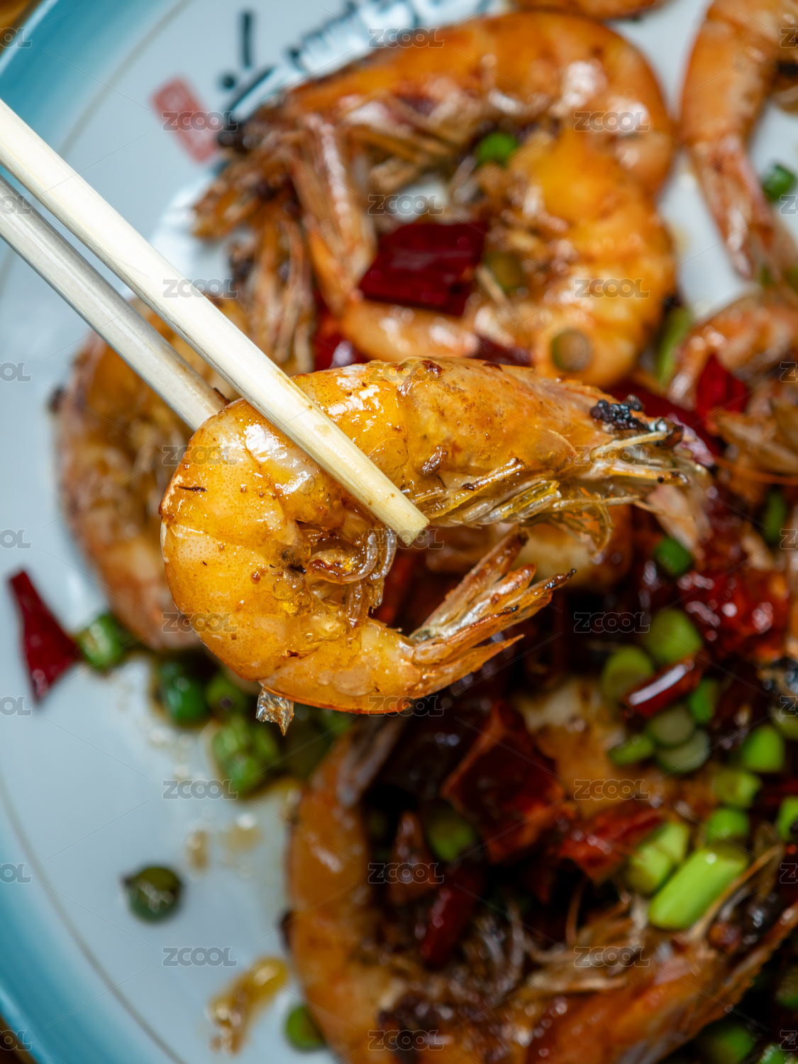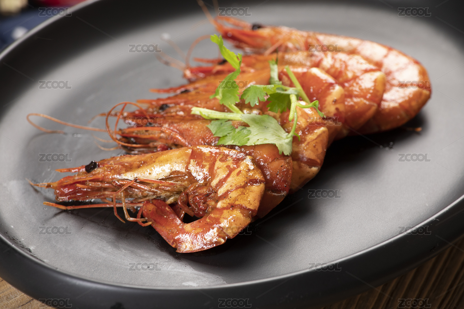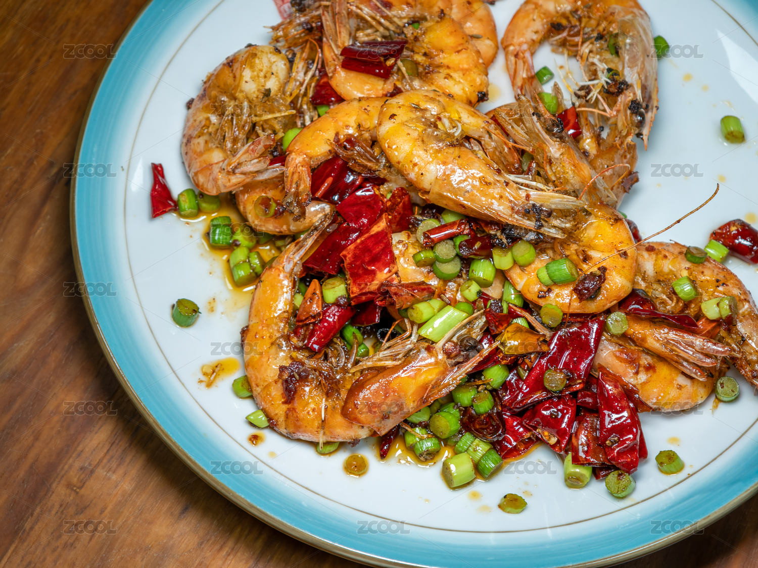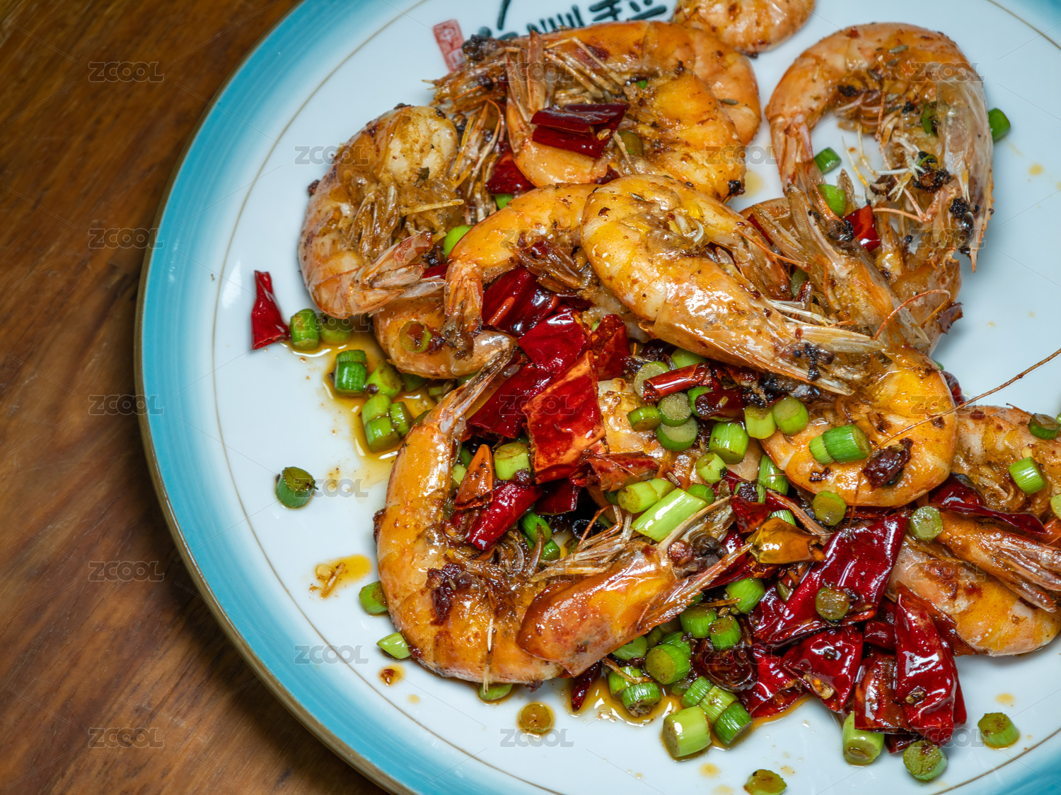 盤子里的元寶蝦干燒蝦炒蝦仁