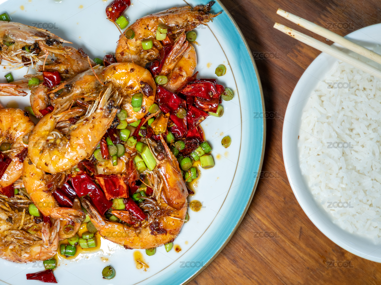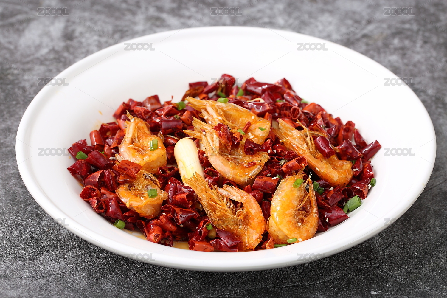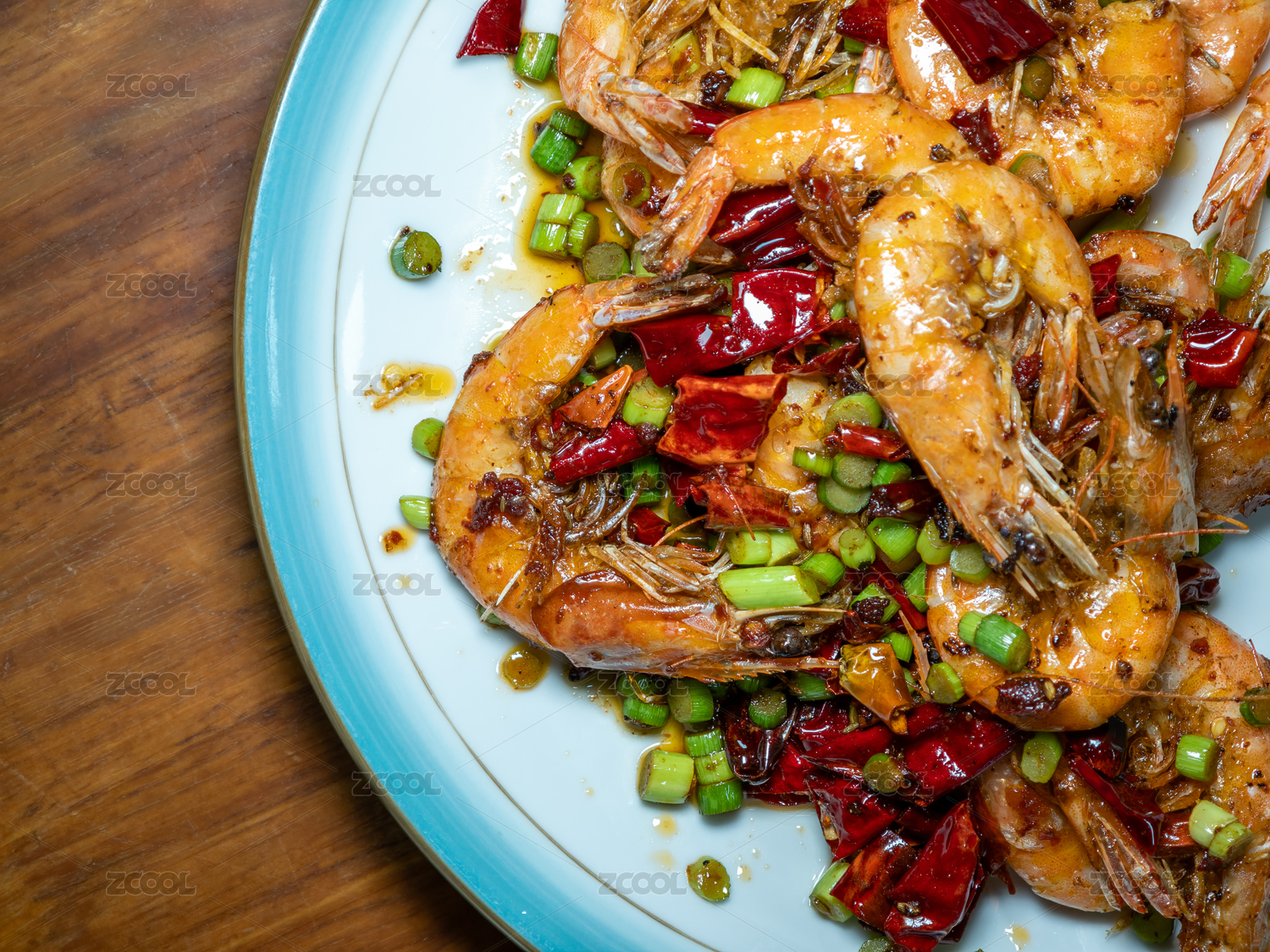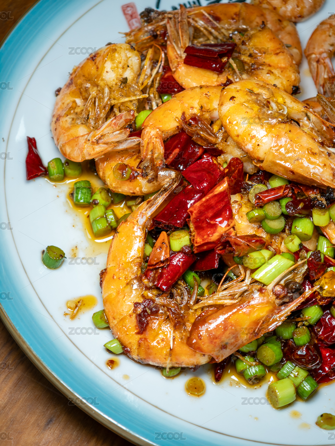 盤子里的元寶蝦干燒蝦炒蝦仁