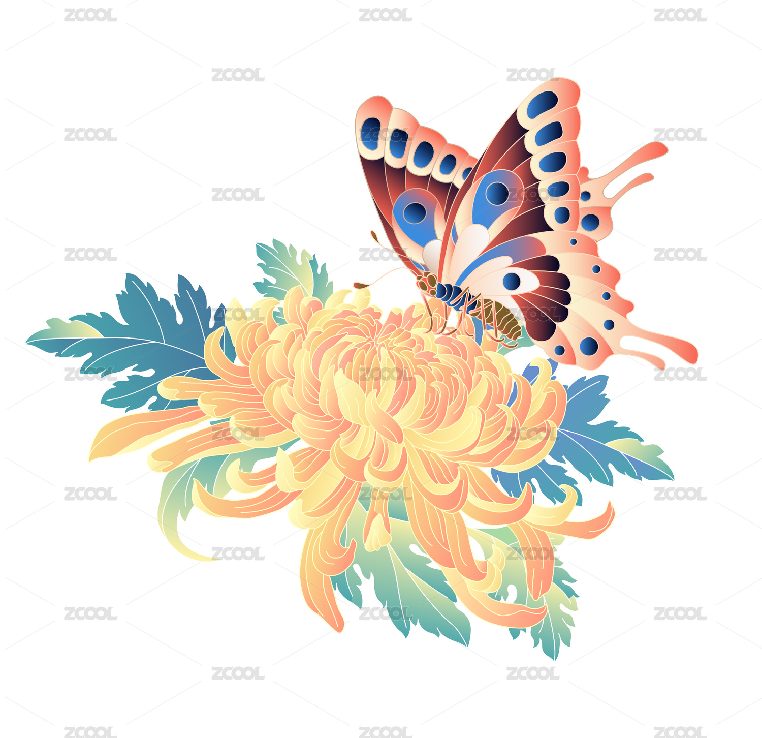 蝶戀花蝴蝶紫藤花粉紫色中國(guó)紋樣國(guó)潮插畫(huà)