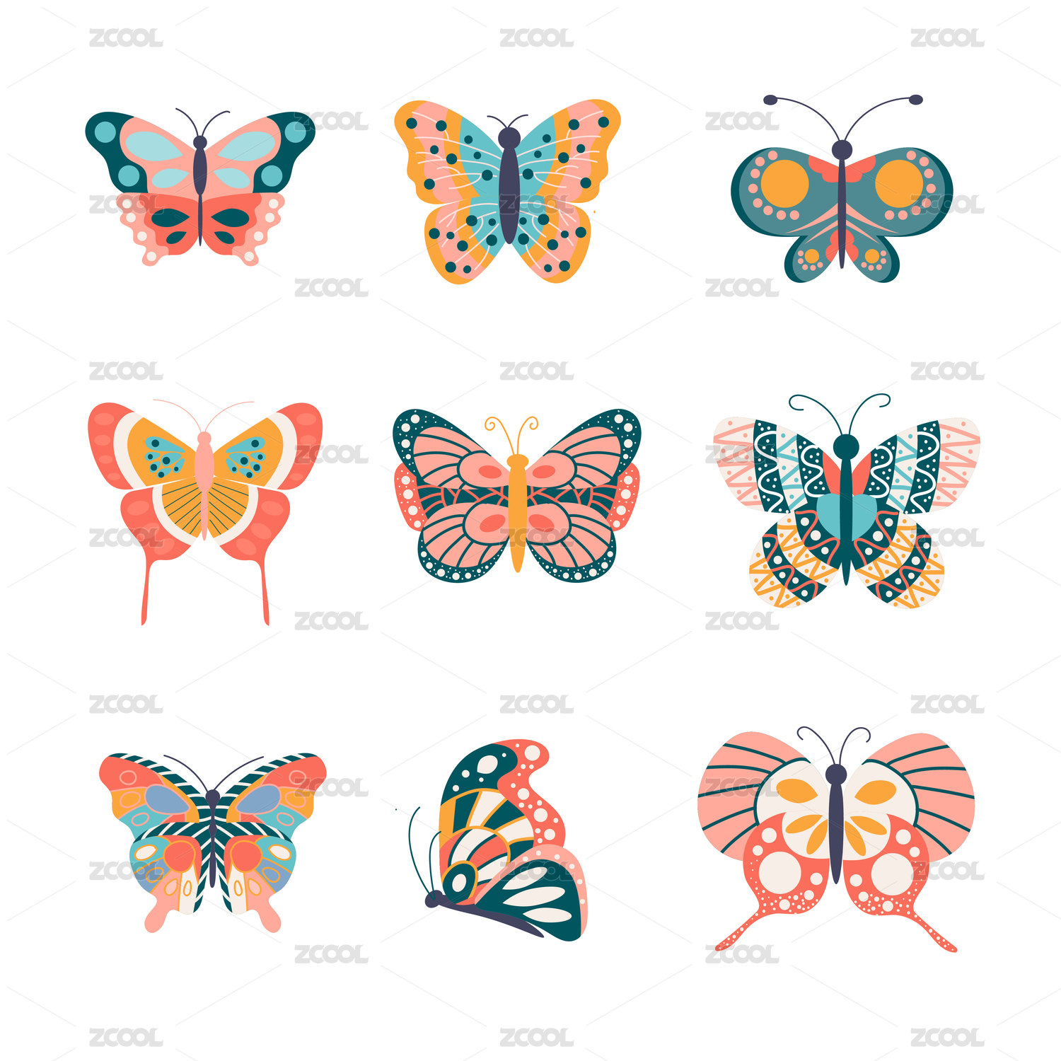 卡通手繪彩色昆蟲(chóng)蝴蝶插畫(huà)