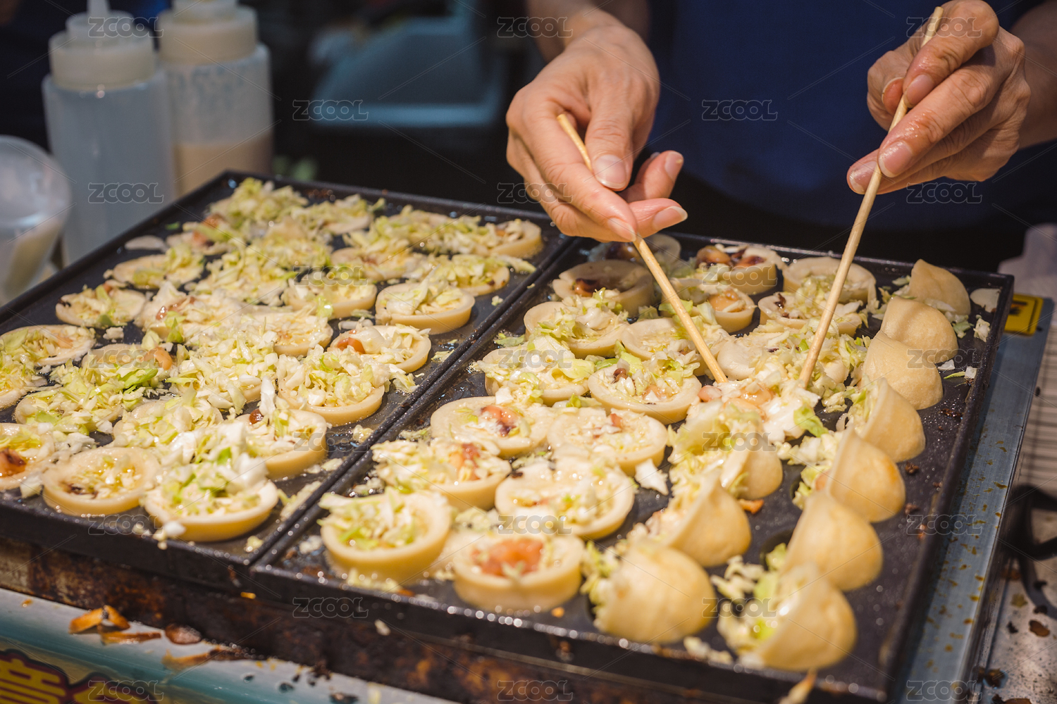 正在制作烘烤的章魚小丸子