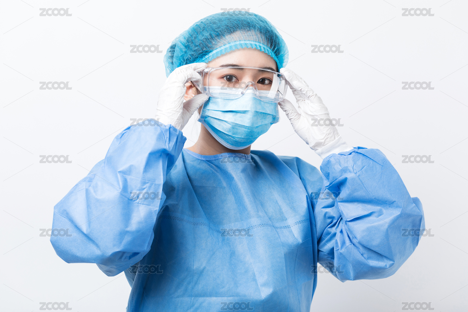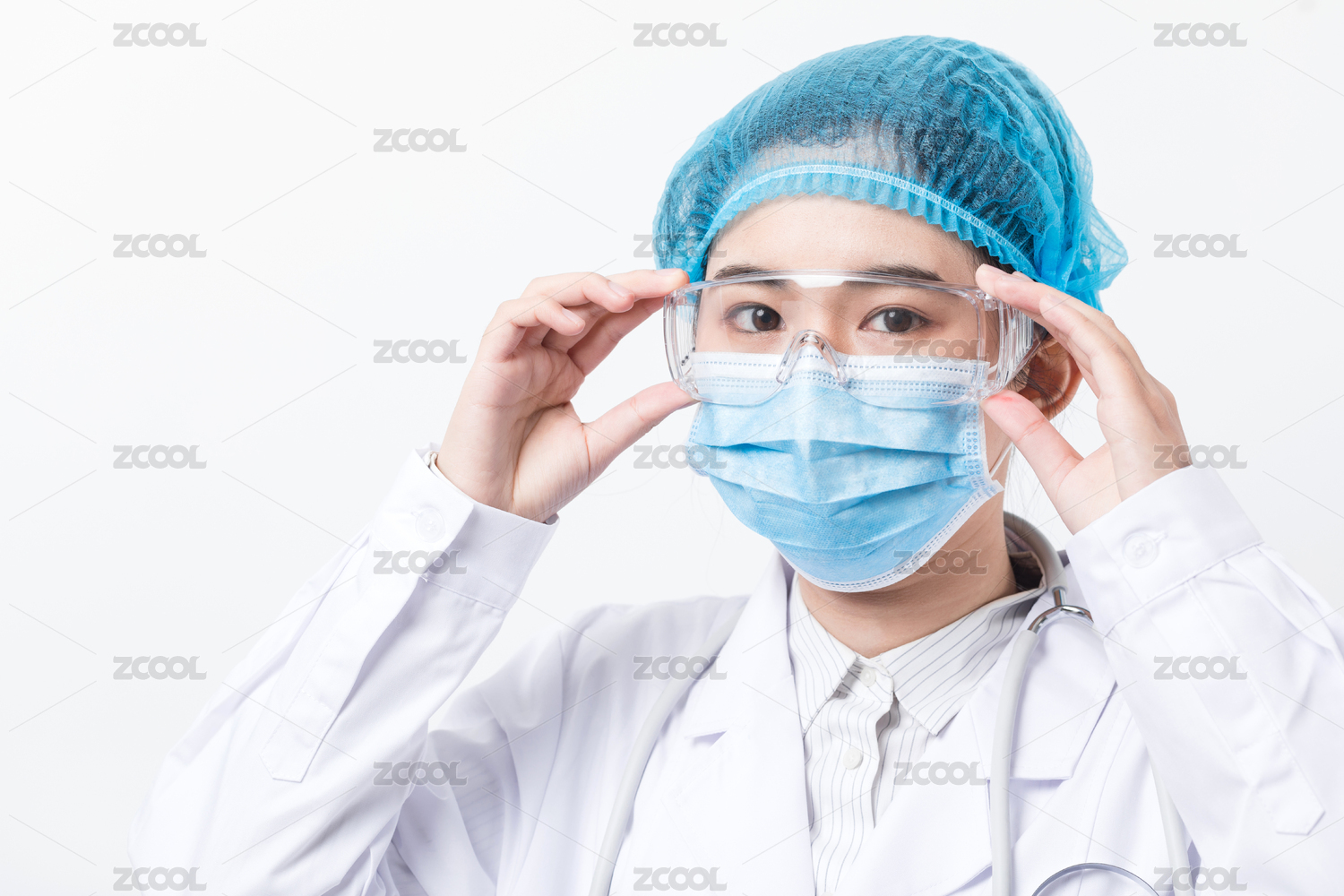醫(yī)護人員雙手佩戴護目鏡側(cè)面