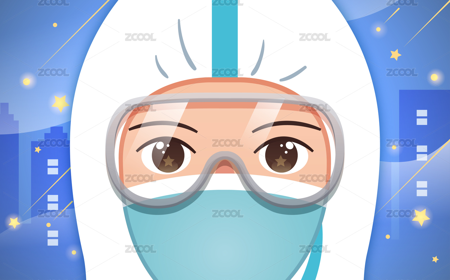 醫(yī)生穿著防護服帶著口罩和護目鏡的插畫