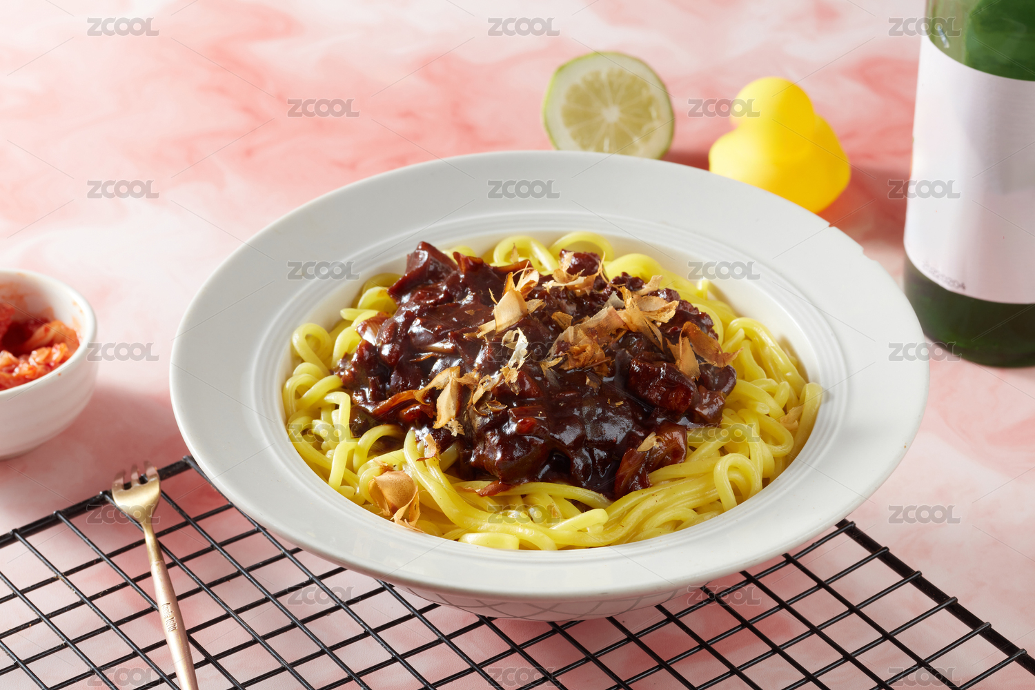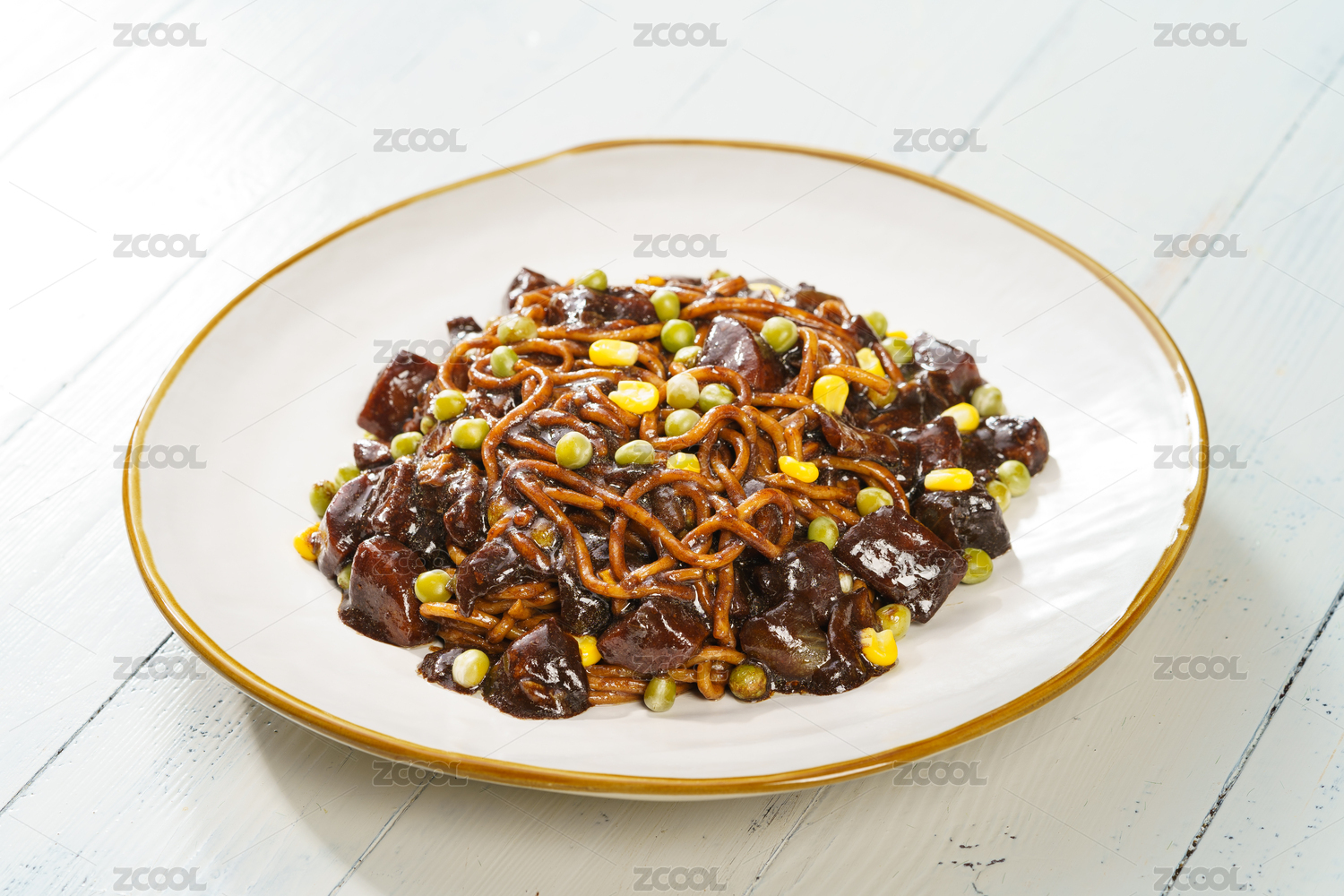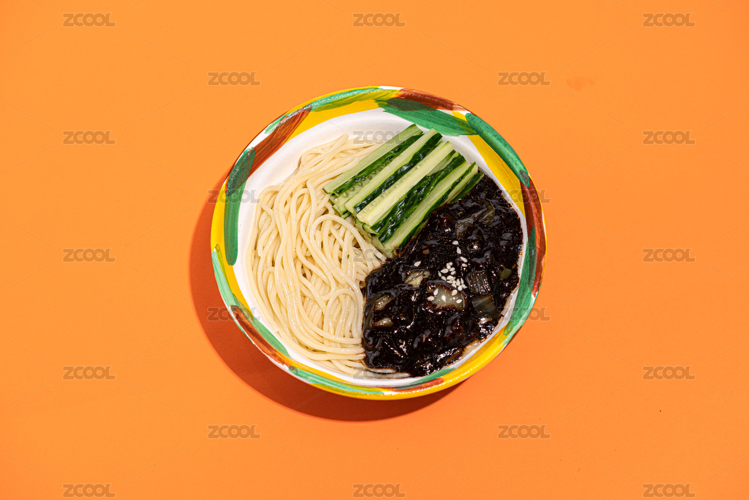 簡(jiǎn)單背景下的韓國(guó)特色美食炸醬面