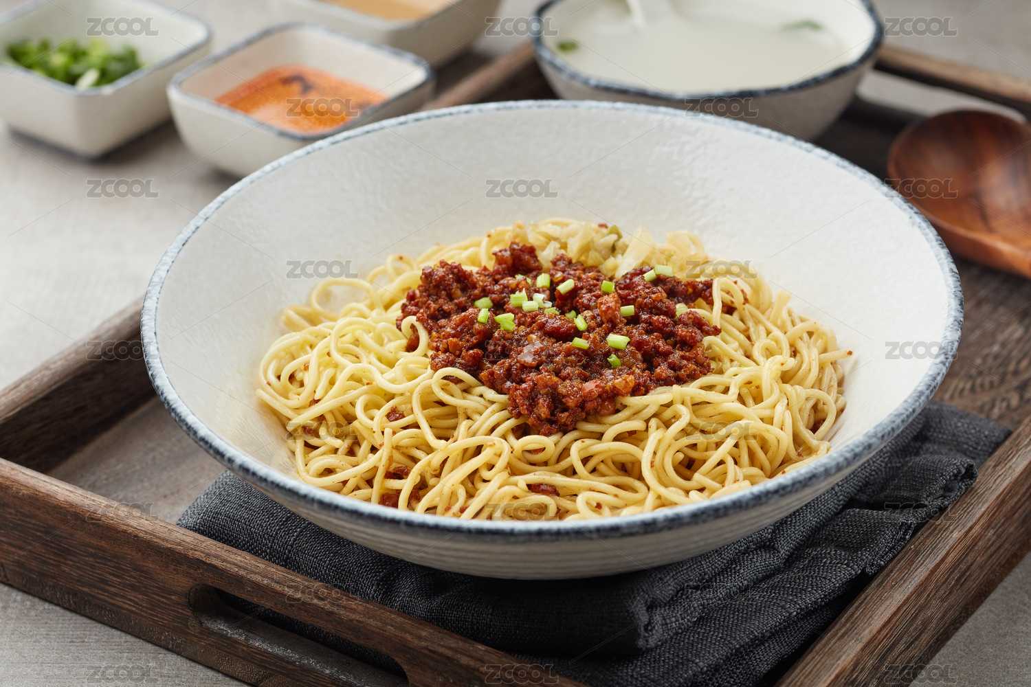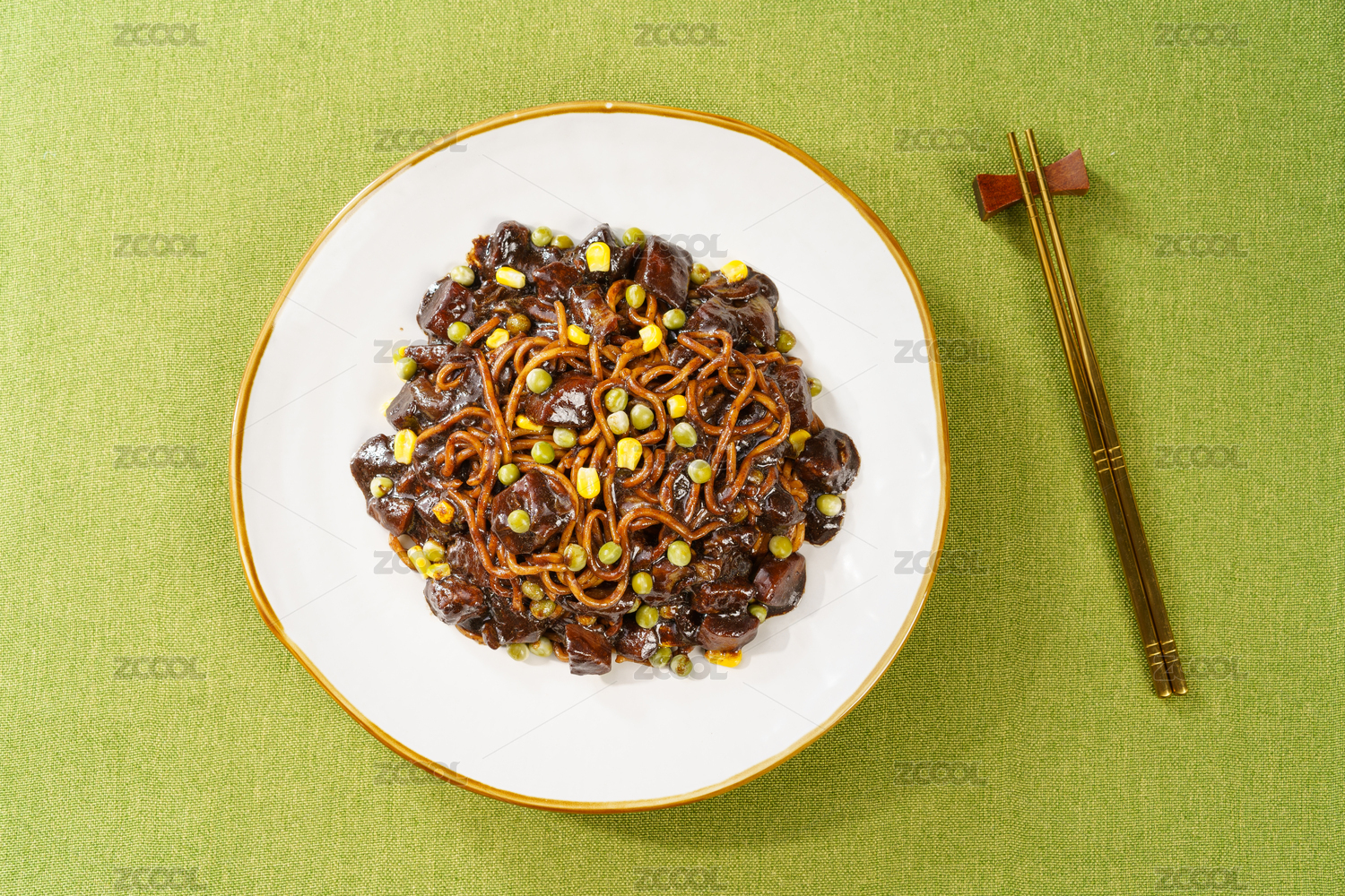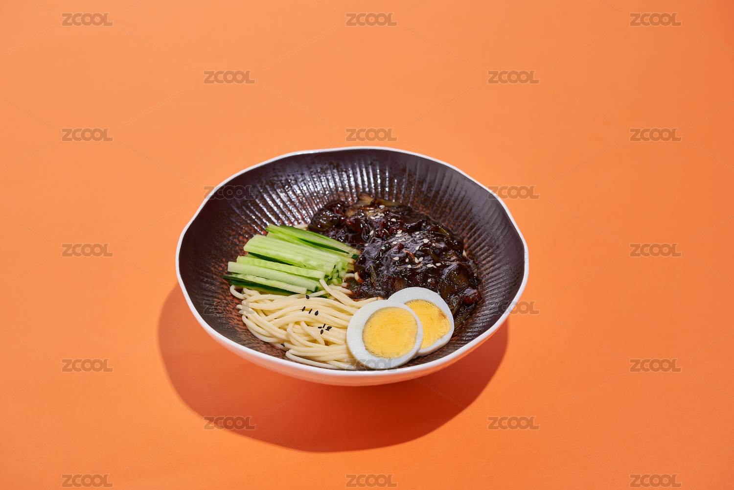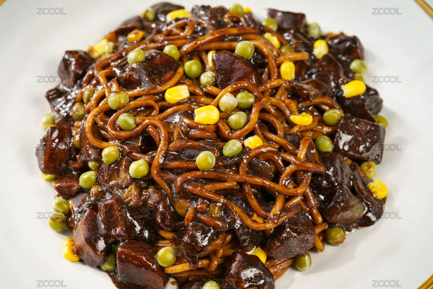 簡(jiǎn)單背景下的韓國(guó)特色美食炸醬面