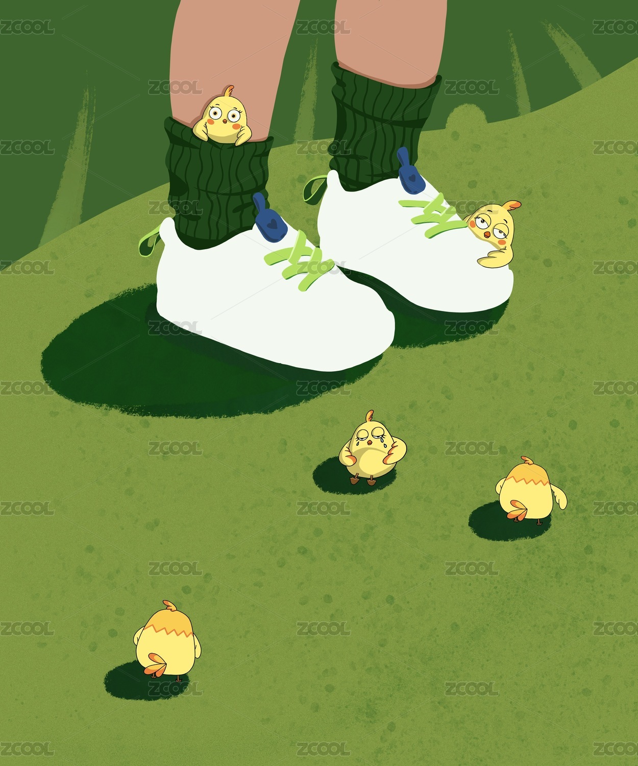 綠色可愛童趣小雞