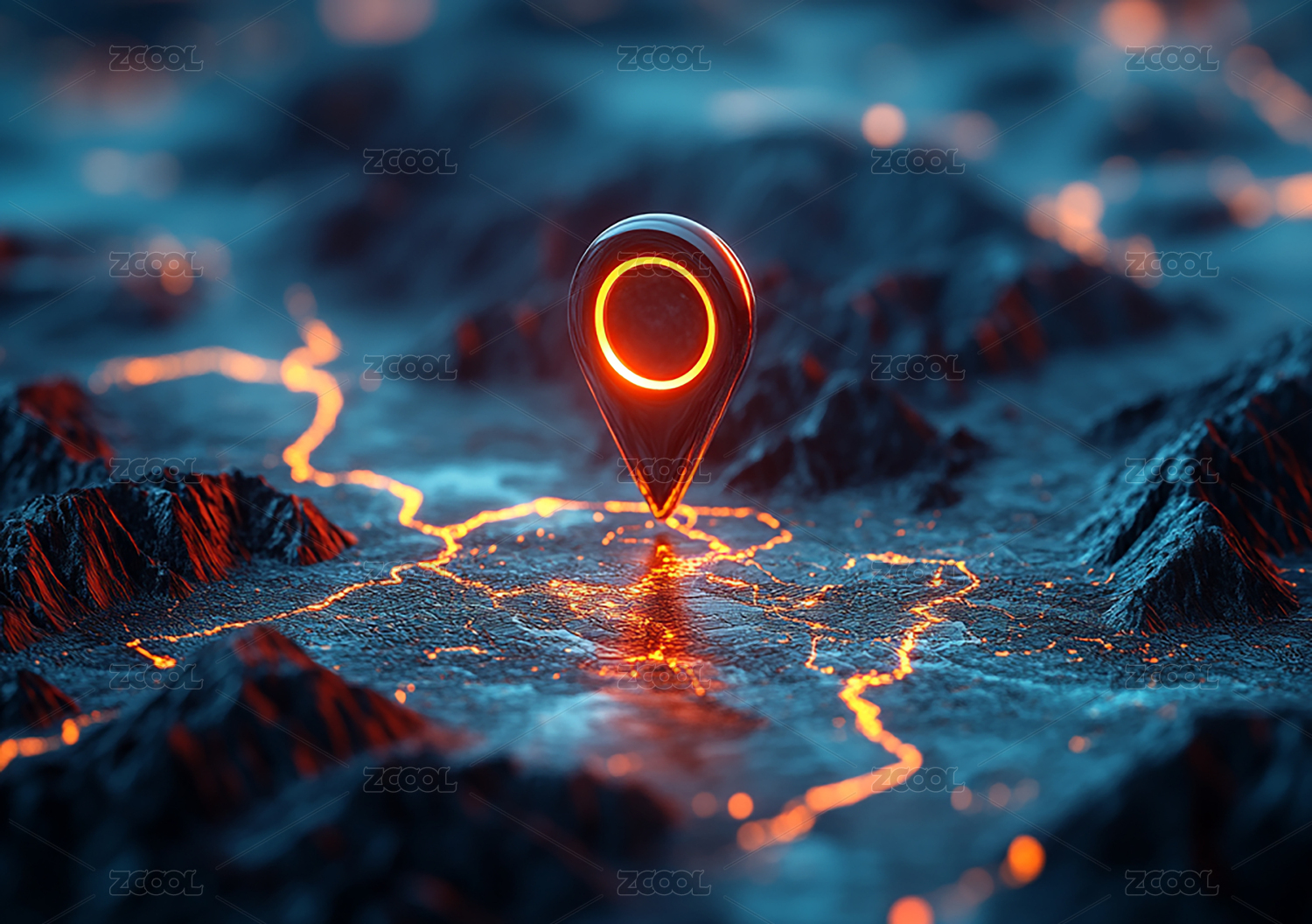科技藍(lán)透光玻璃地圖坐標(biāo)定位標(biāo)記智能概念圖