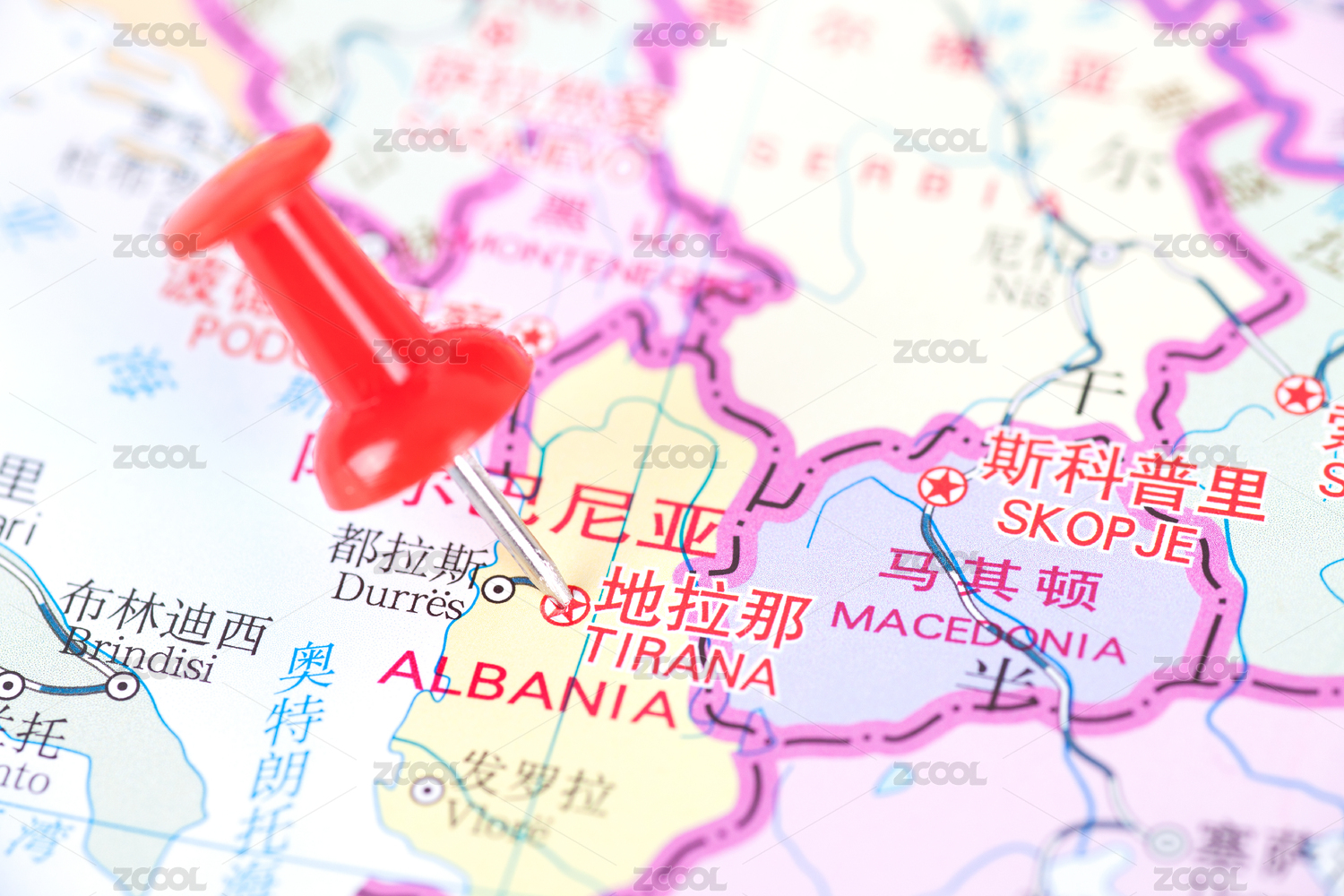 地圖上標(biāo)注的阿爾巴尼亞首都地拉那