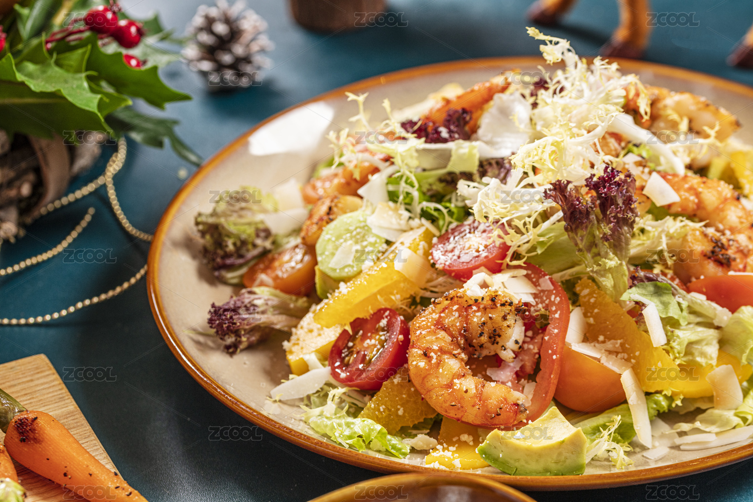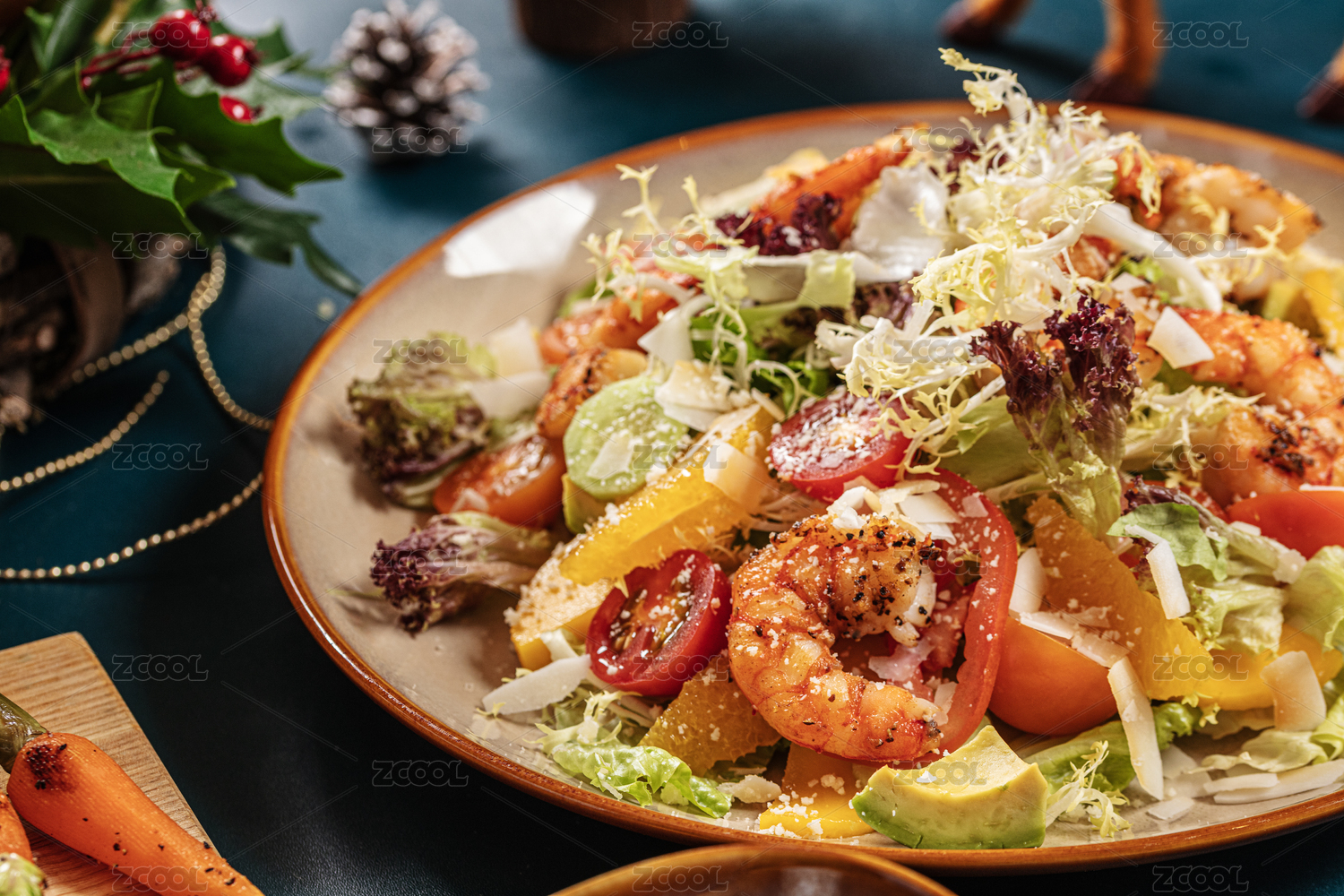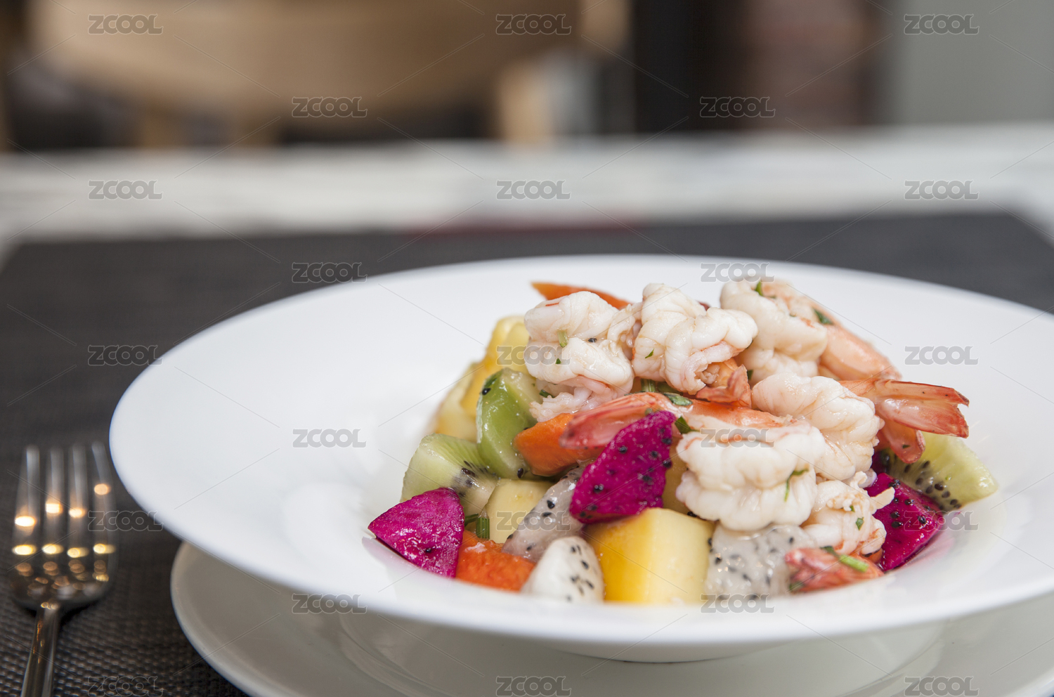 搭配豐富新鮮蔬果的蝦仁沙拉