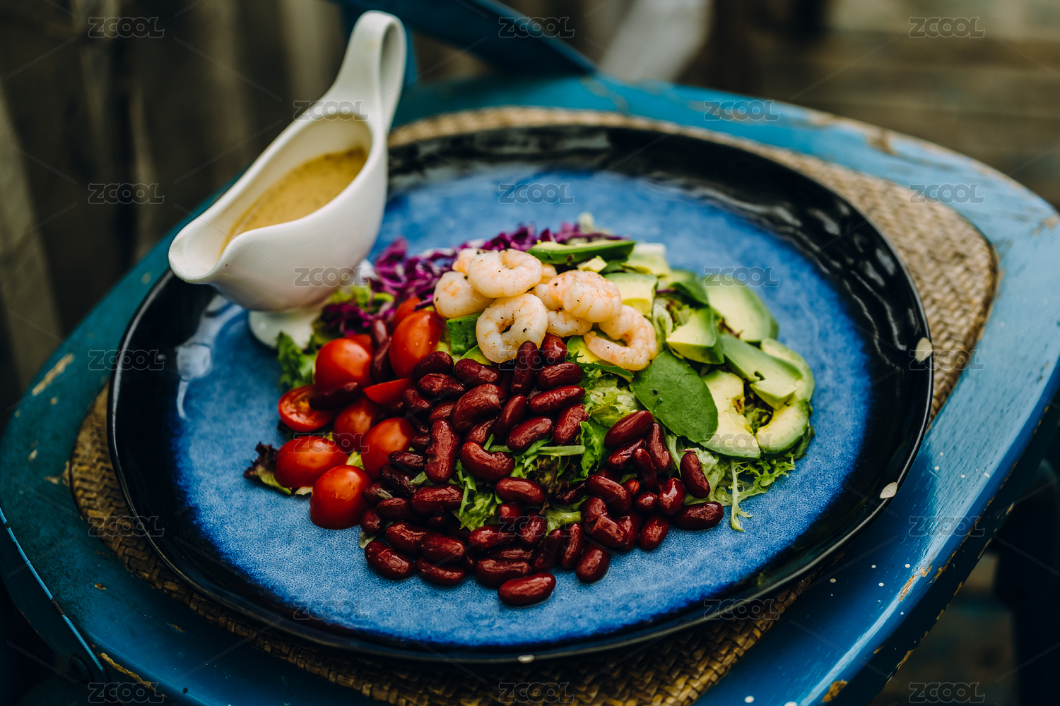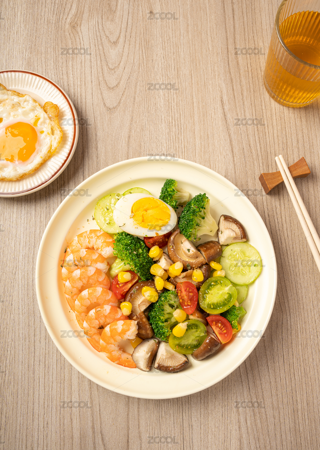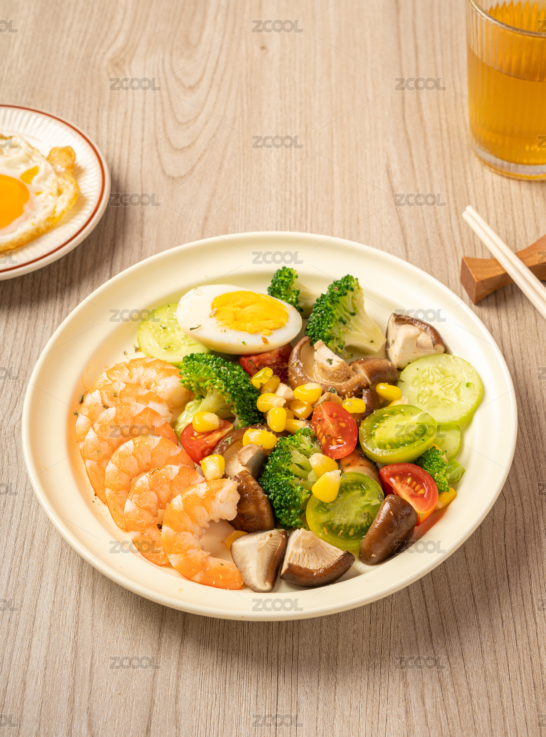 搭配豐富新鮮蔬果的蝦仁沙拉