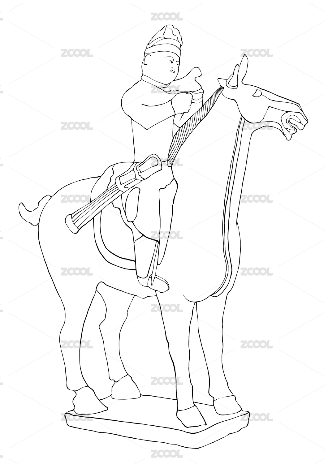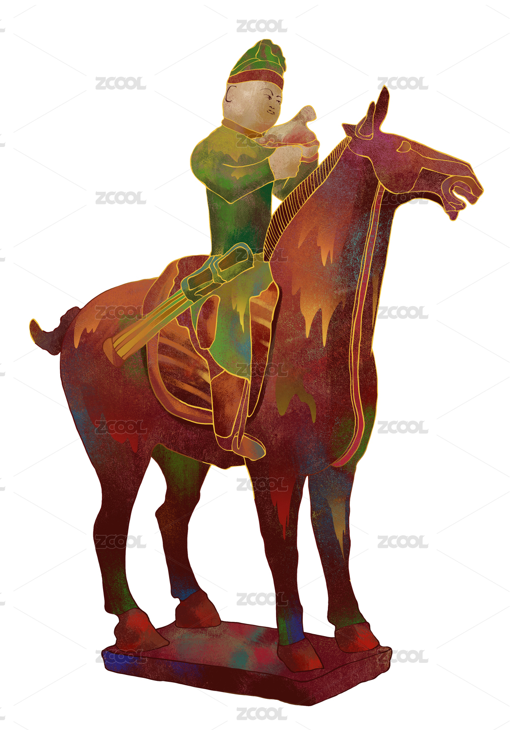狩獵騎馬陶俑國潮插畫