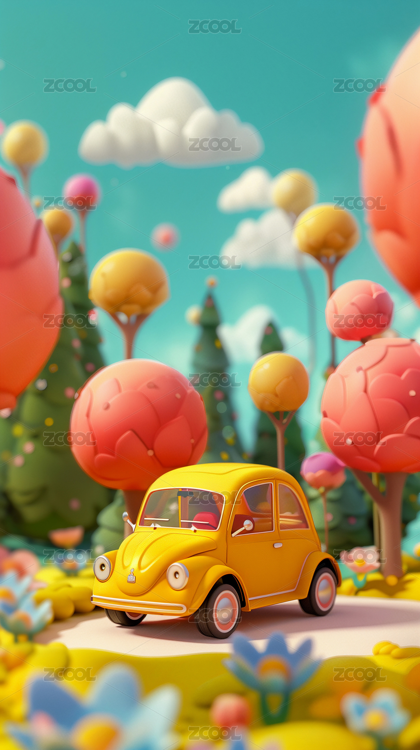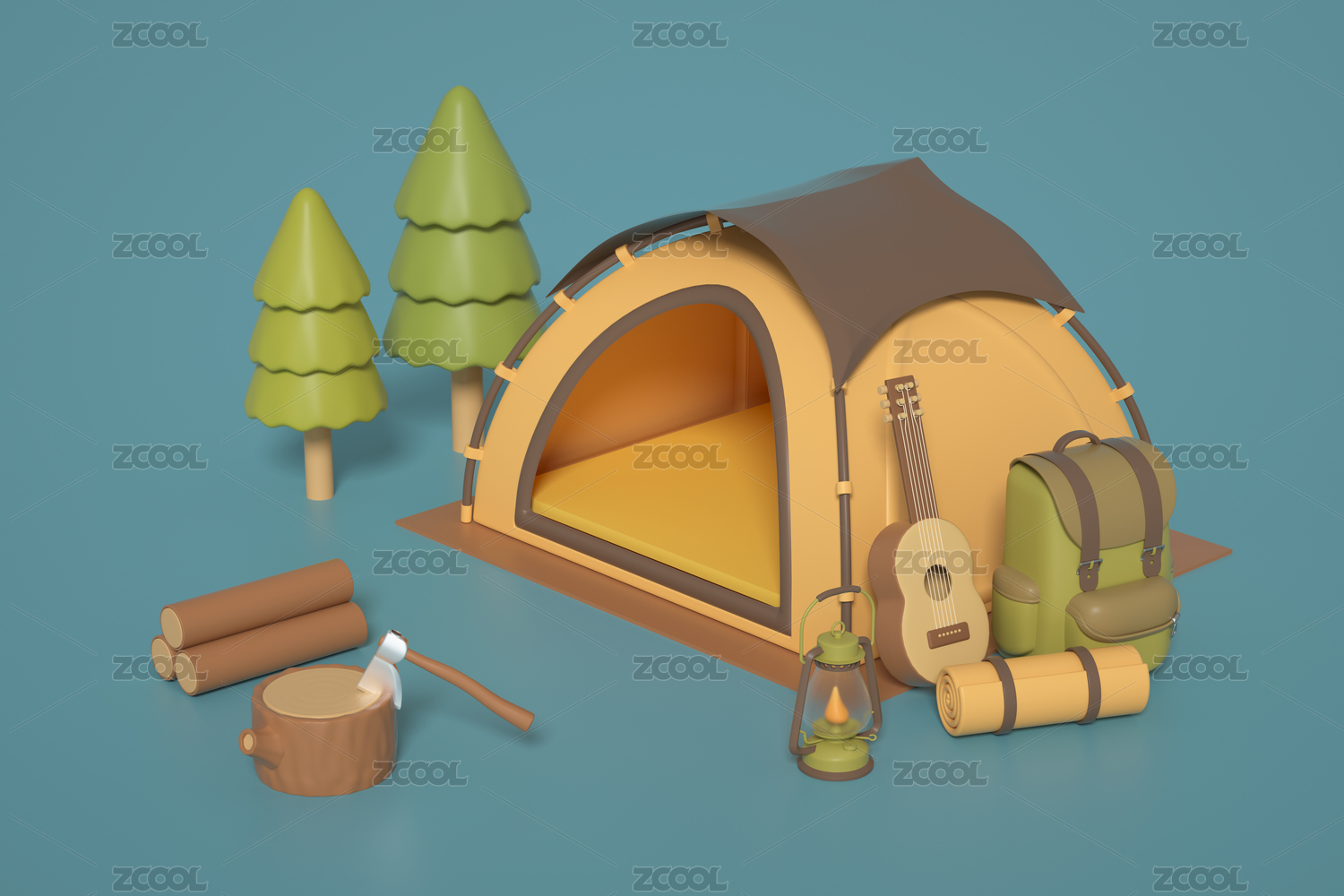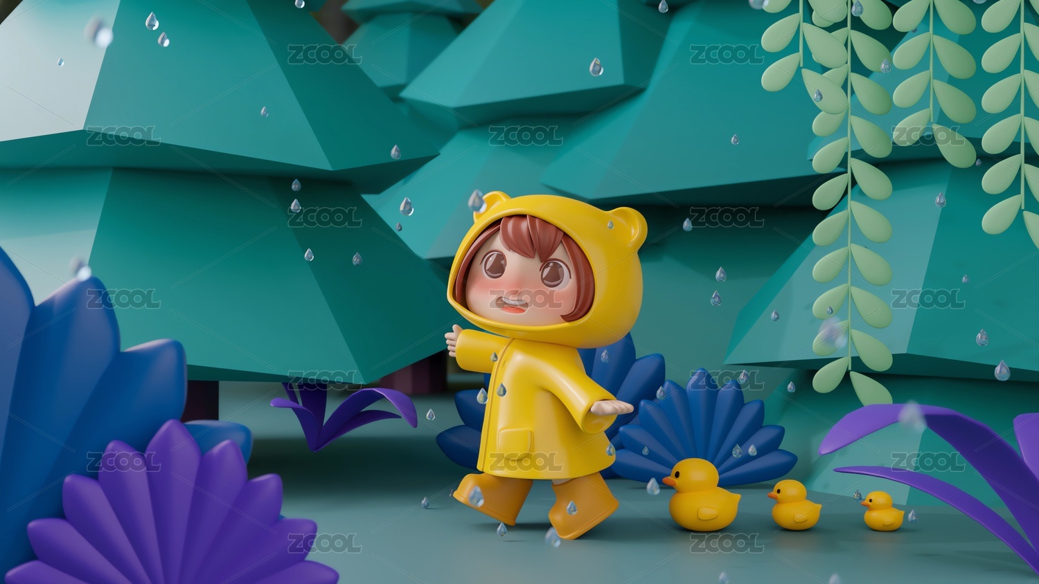 一個(gè)女孩在森林郊游谷雨3D插畫