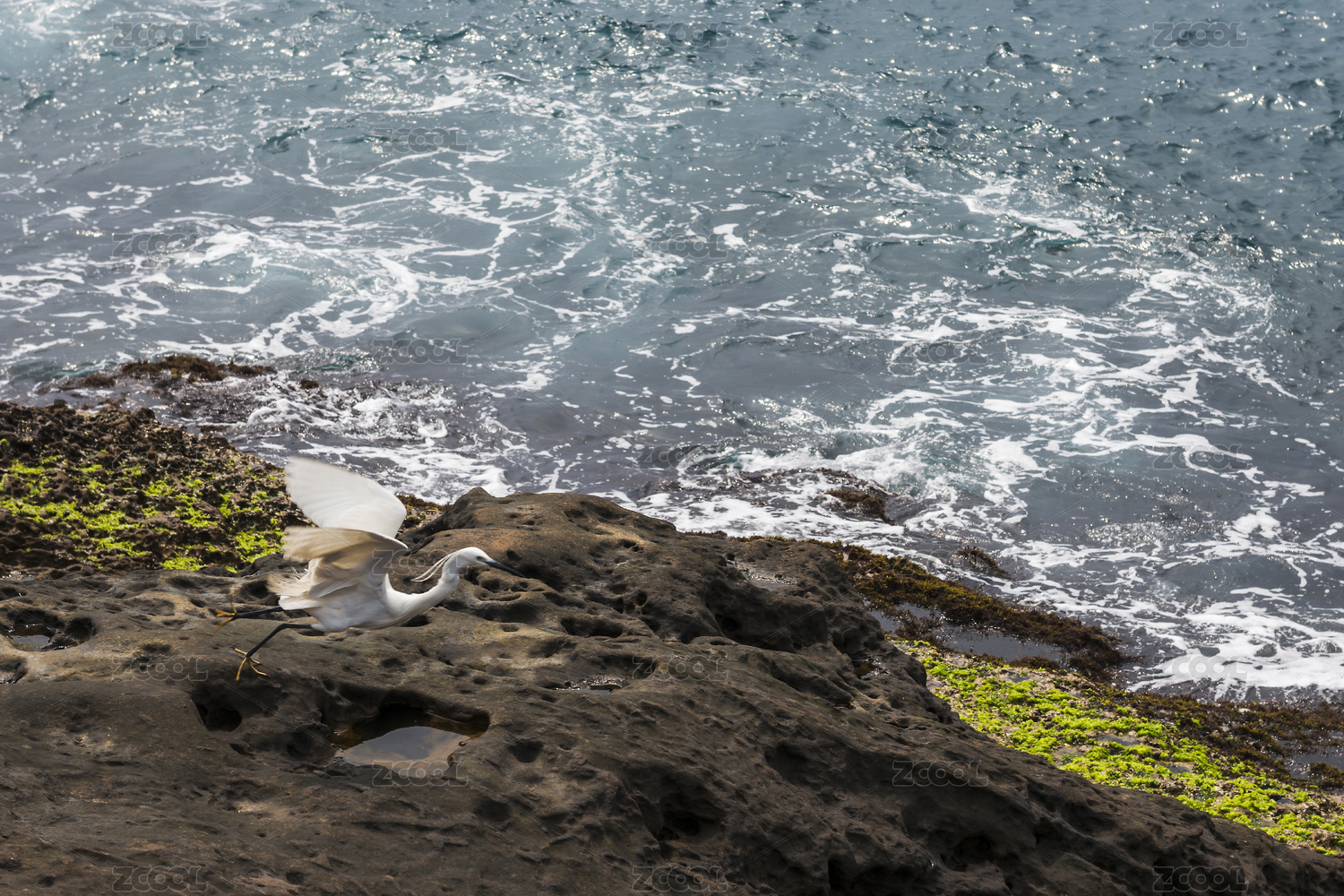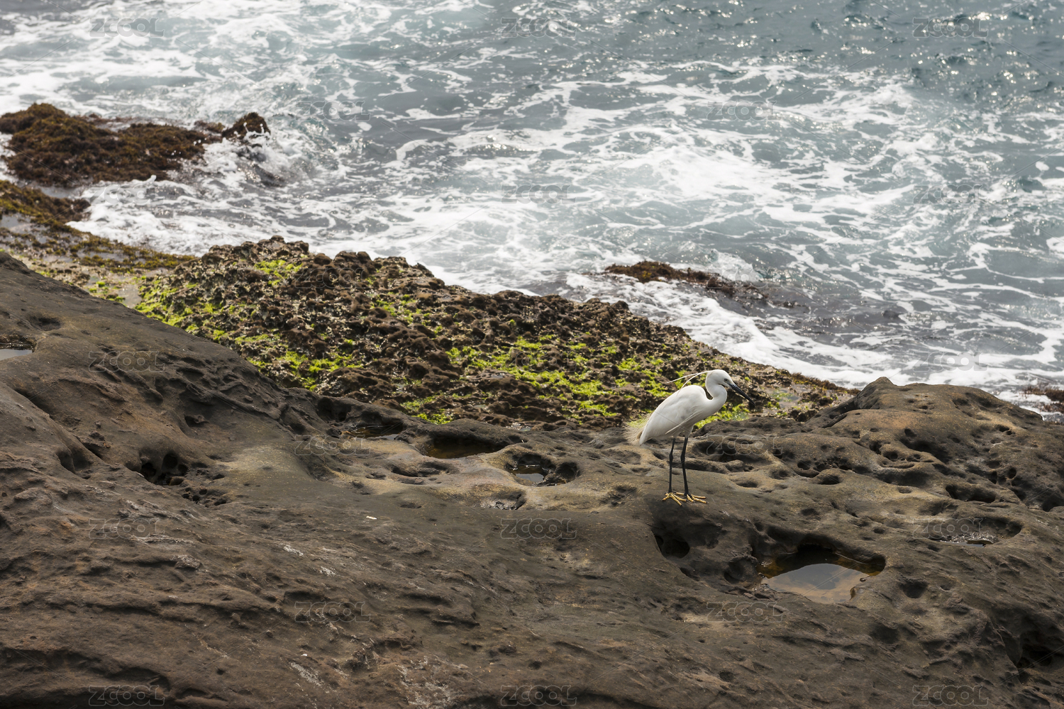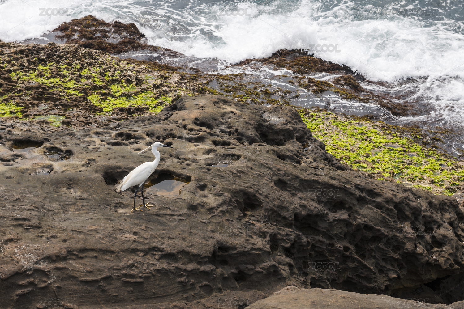 中國臺灣野柳風(fēng)景區(qū)海岸邊的白鷺