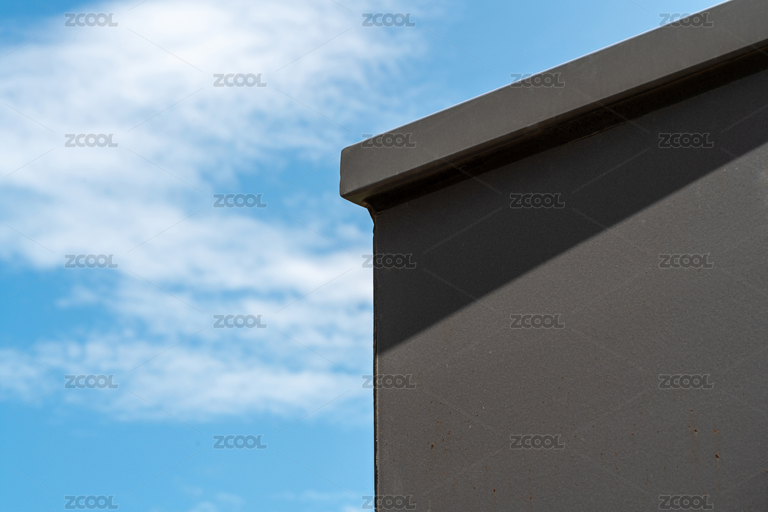 蔚藍(lán)天空下干凈的灰色墻壁