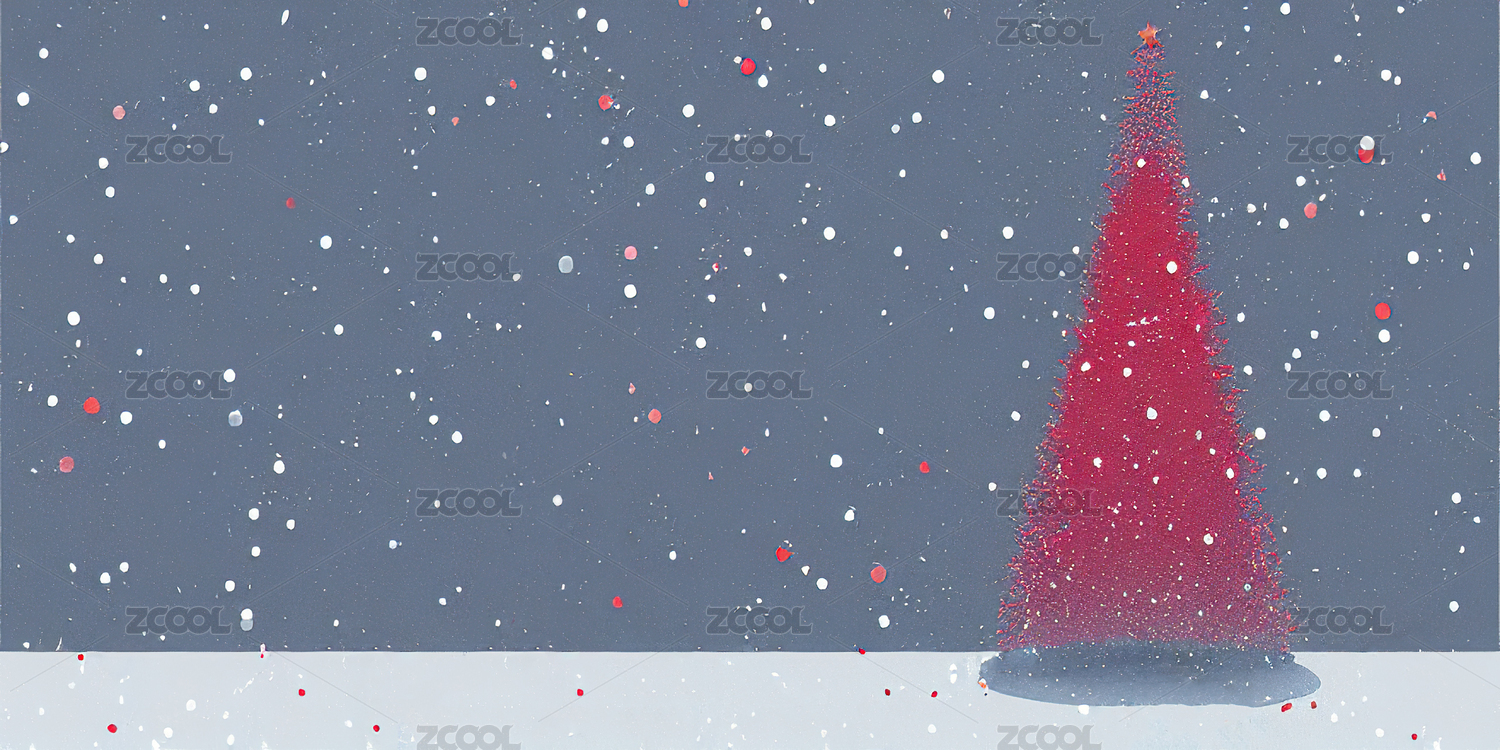 飄著雪的灰色天空 白色雪地里的紅色圣誕樹