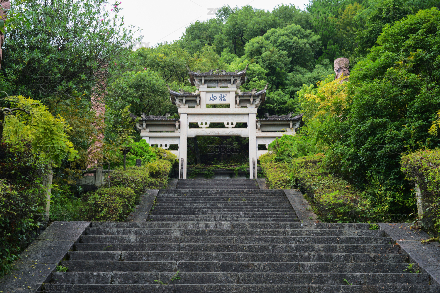 中國(guó)浙江杭州千島湖島上的牌坊和臺(tái)階