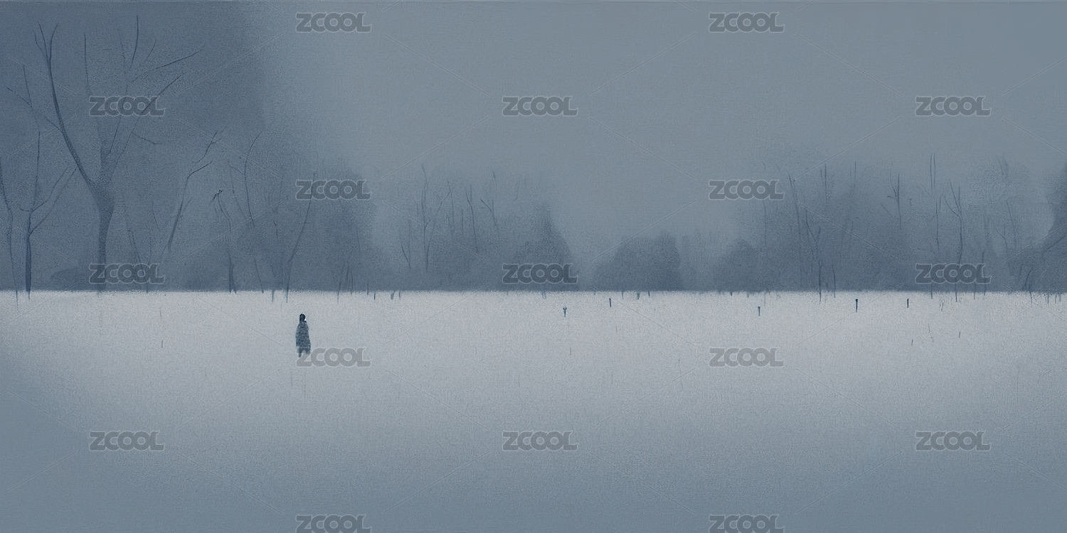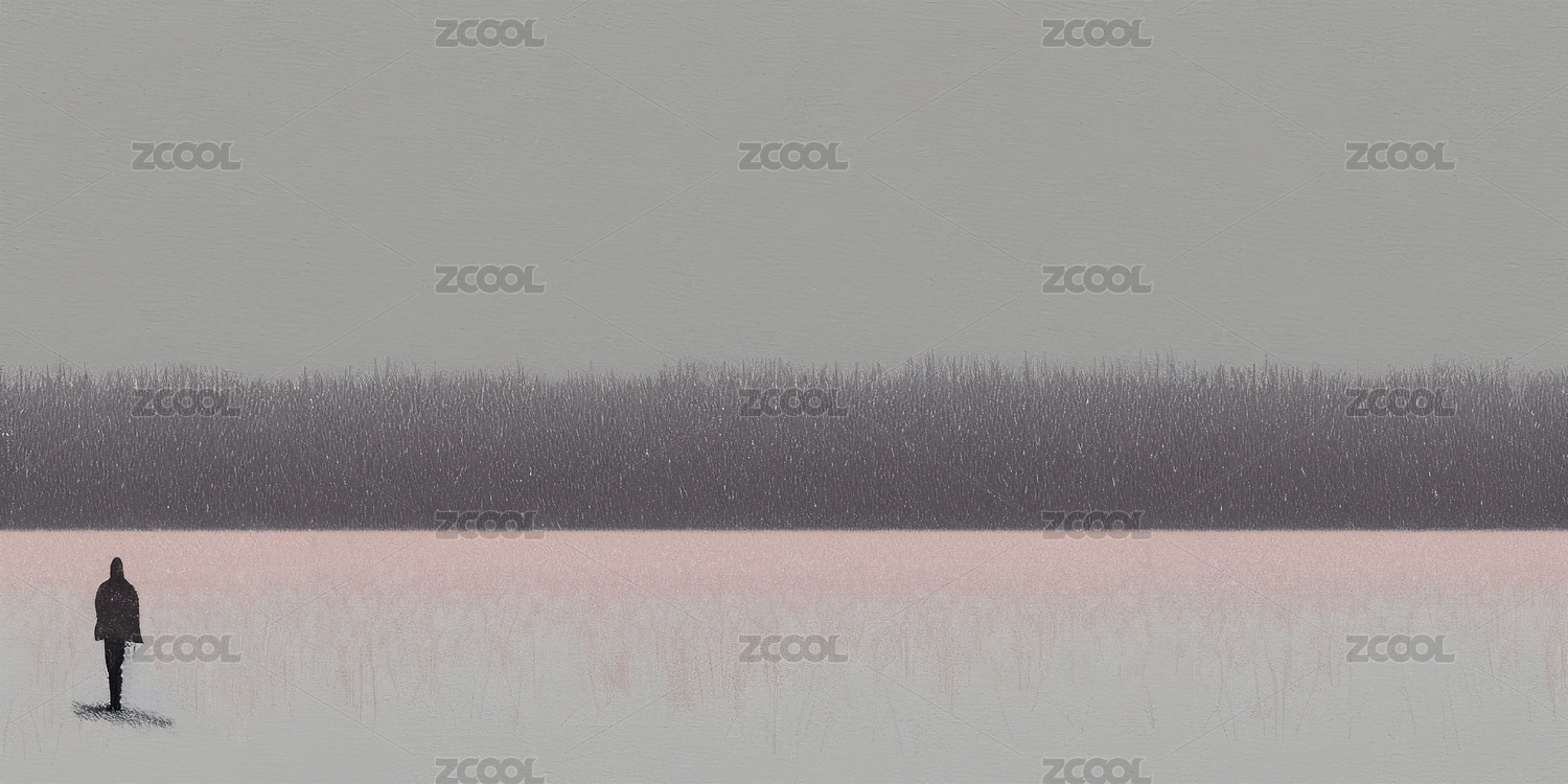 灰色天空 銀色雪地里孤獨(dú)的人影