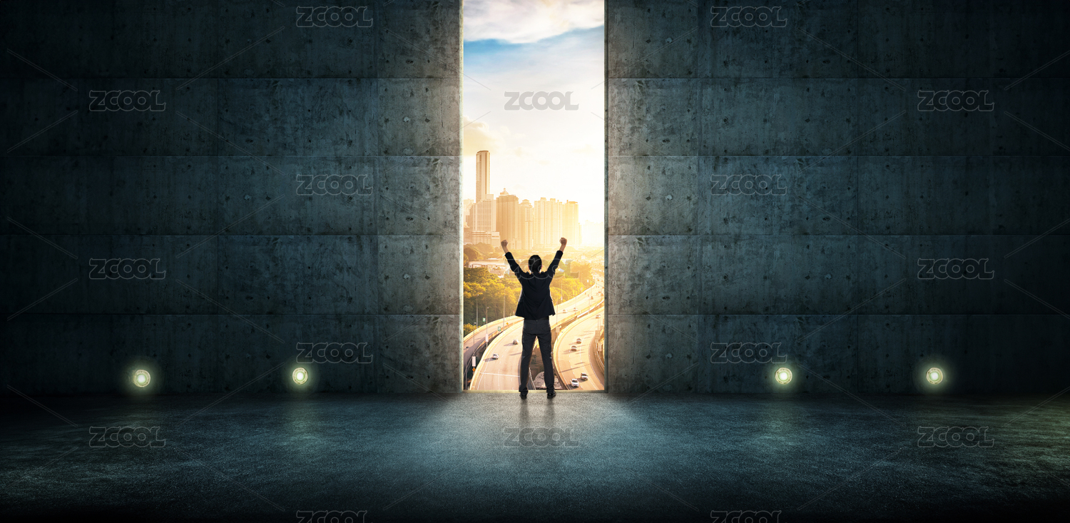商人舉起雙手慶祝成功了