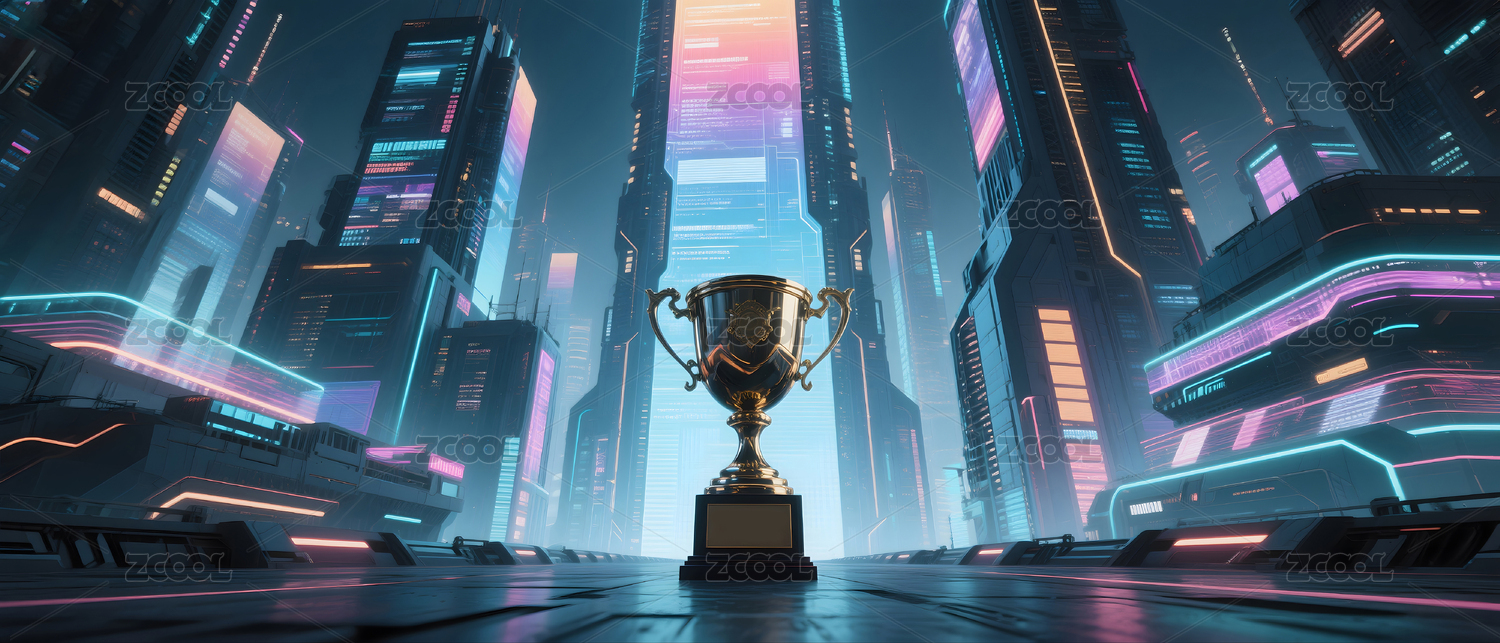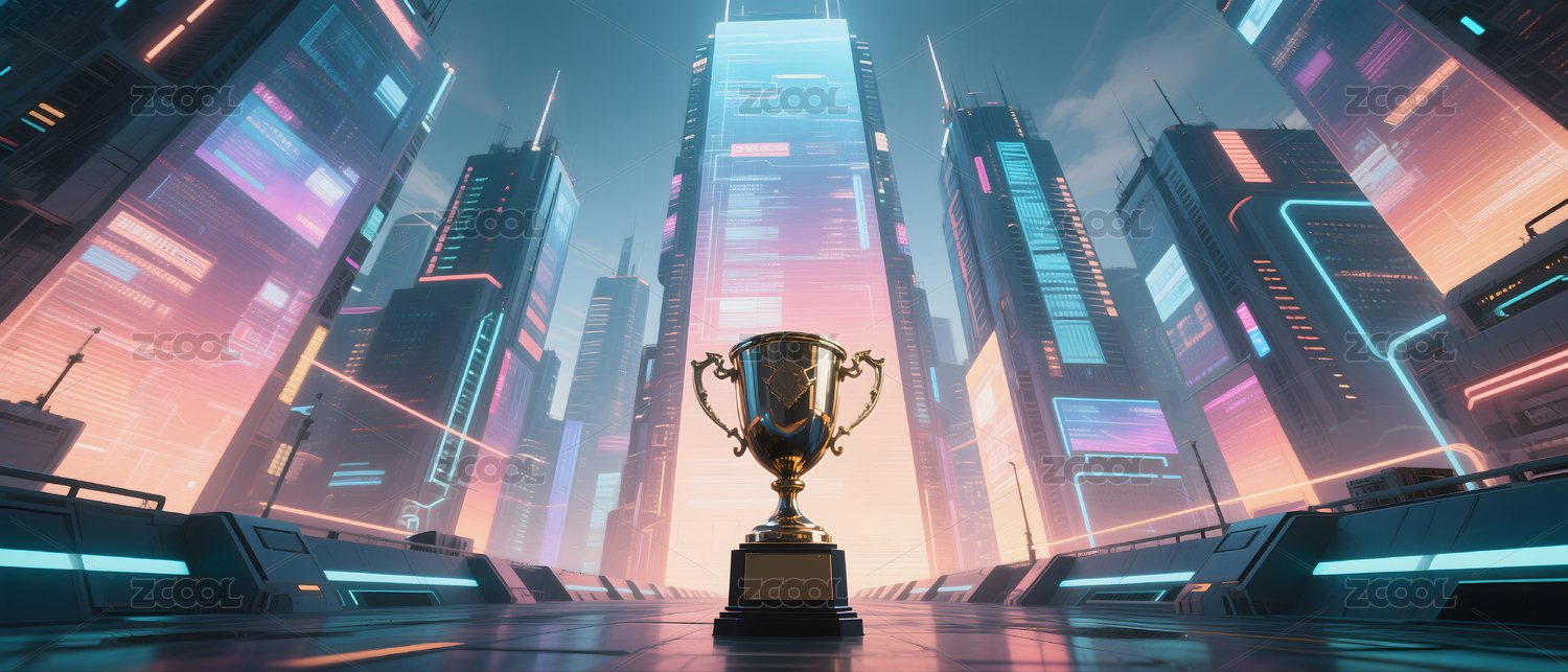 未來(lái)城市中的冠軍獎(jiǎng)杯