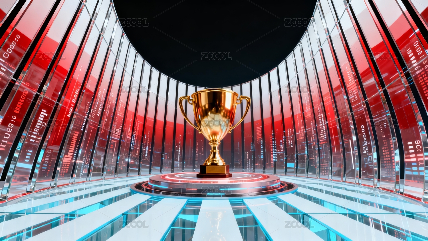 金色獎(jiǎng)杯紅藍(lán)科技頒獎(jiǎng)場(chǎng)景