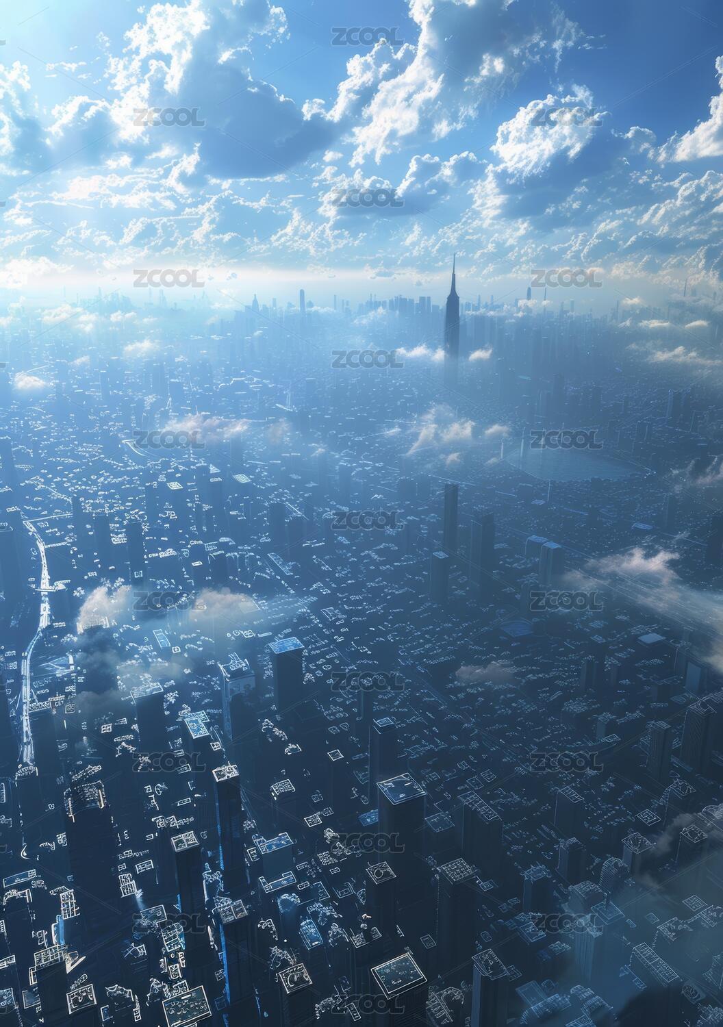 城市天際線下的藍(lán)天白云