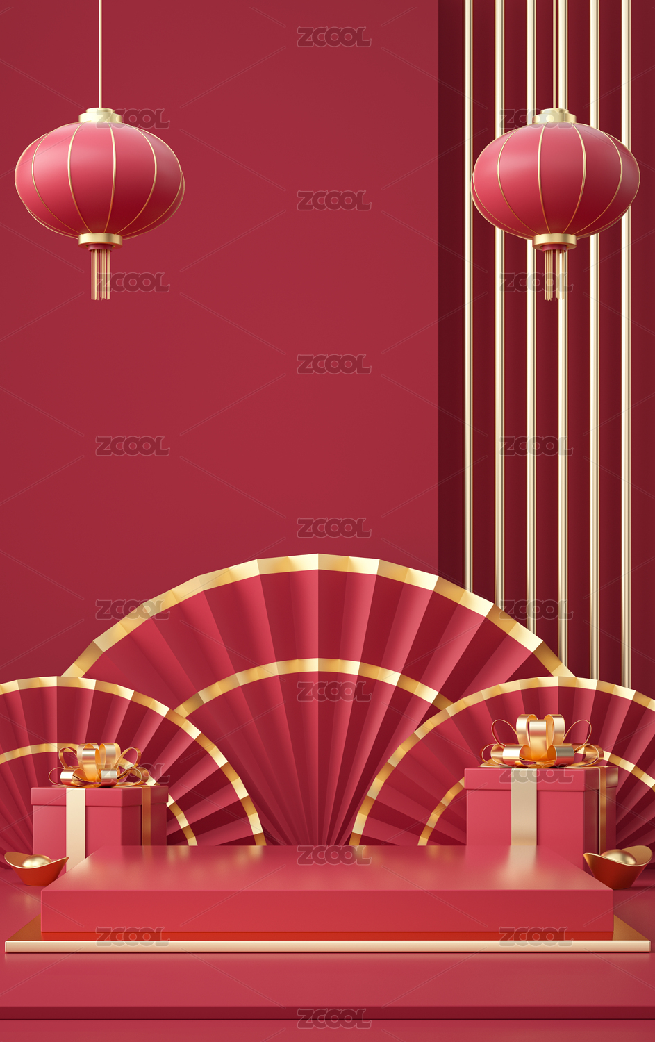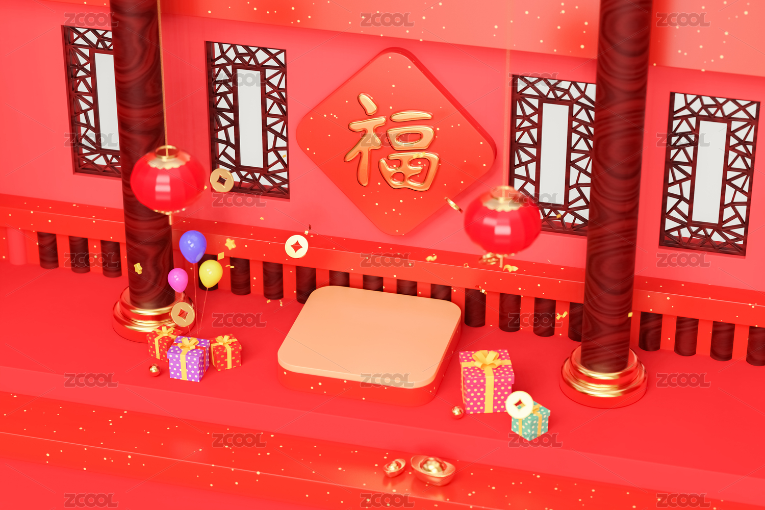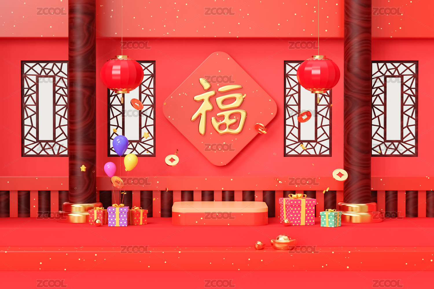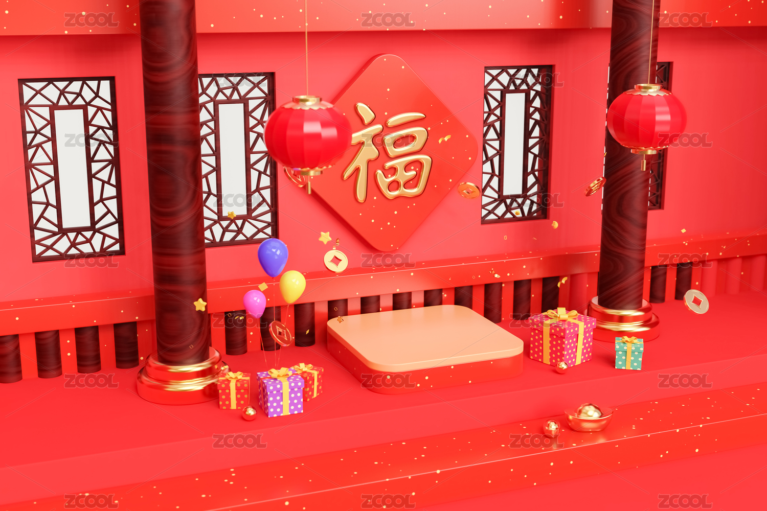 3d產(chǎn)品展臺春節(jié)場景新年背景