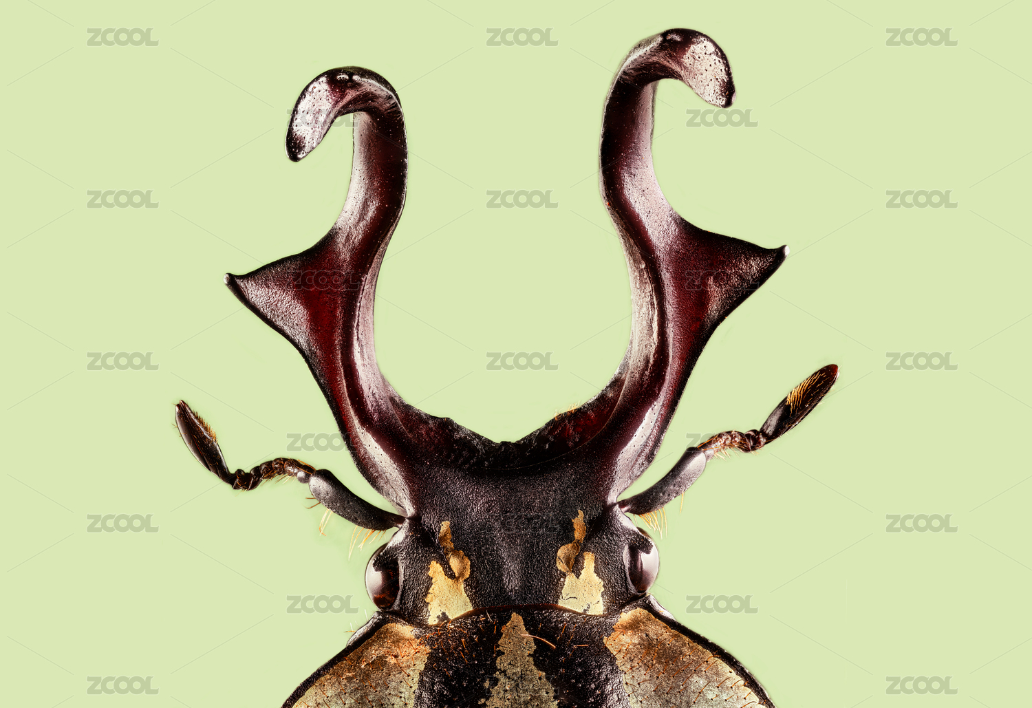 白底上的甲蟲鹿角花金龜