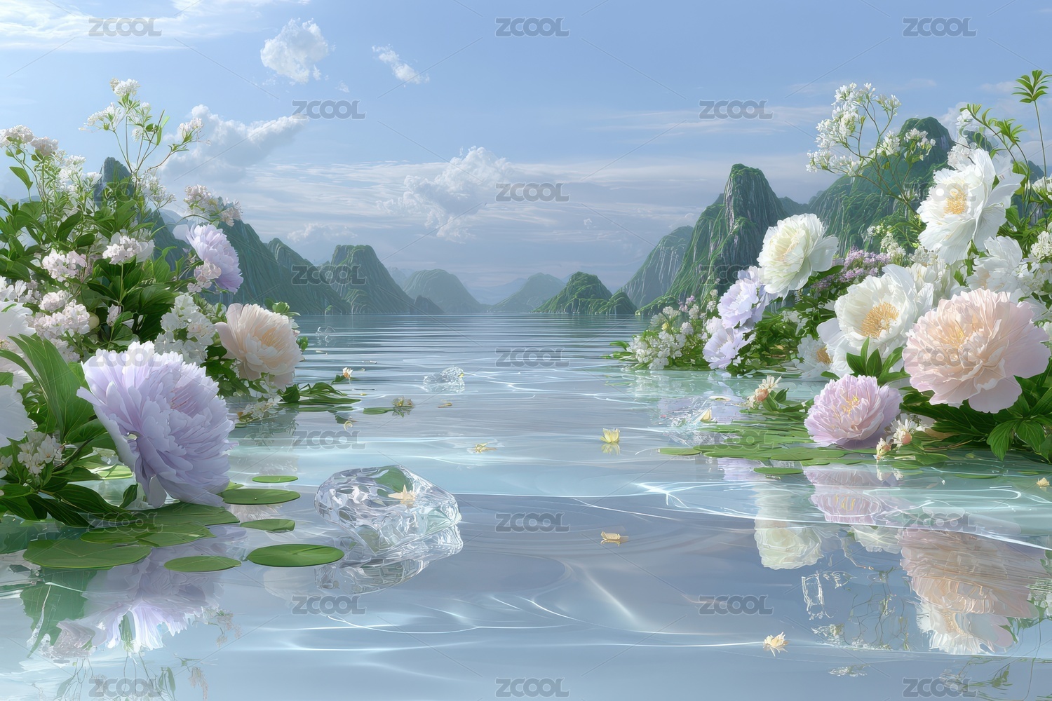 水上花園與遠(yuǎn)山的夢(mèng)幻景致
