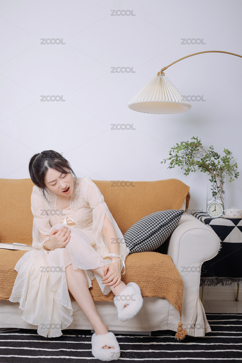 優(yōu)雅迷人的女上班族感覺(jué)小腿疼痛,當(dāng)她工作后,回到家里坐在沙發(fā)上沙發(fā)上,脫下高跟鞋放松。