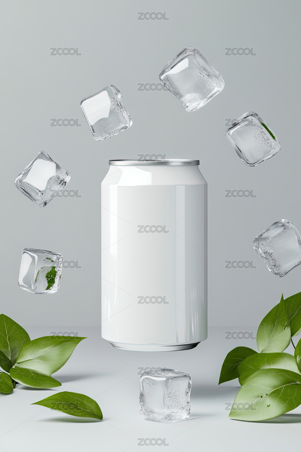可樂罐空白瓶樣機(jī)與冰塊廣告背景