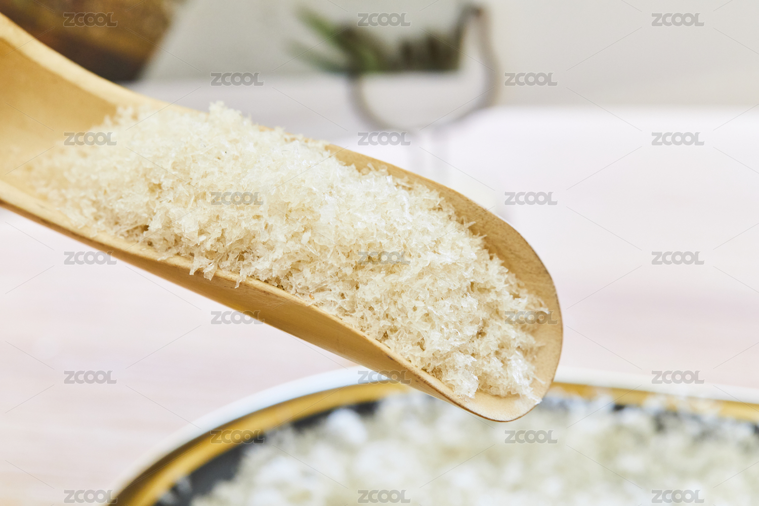 竹質(zhì)勺子盛裝的碎燕窩