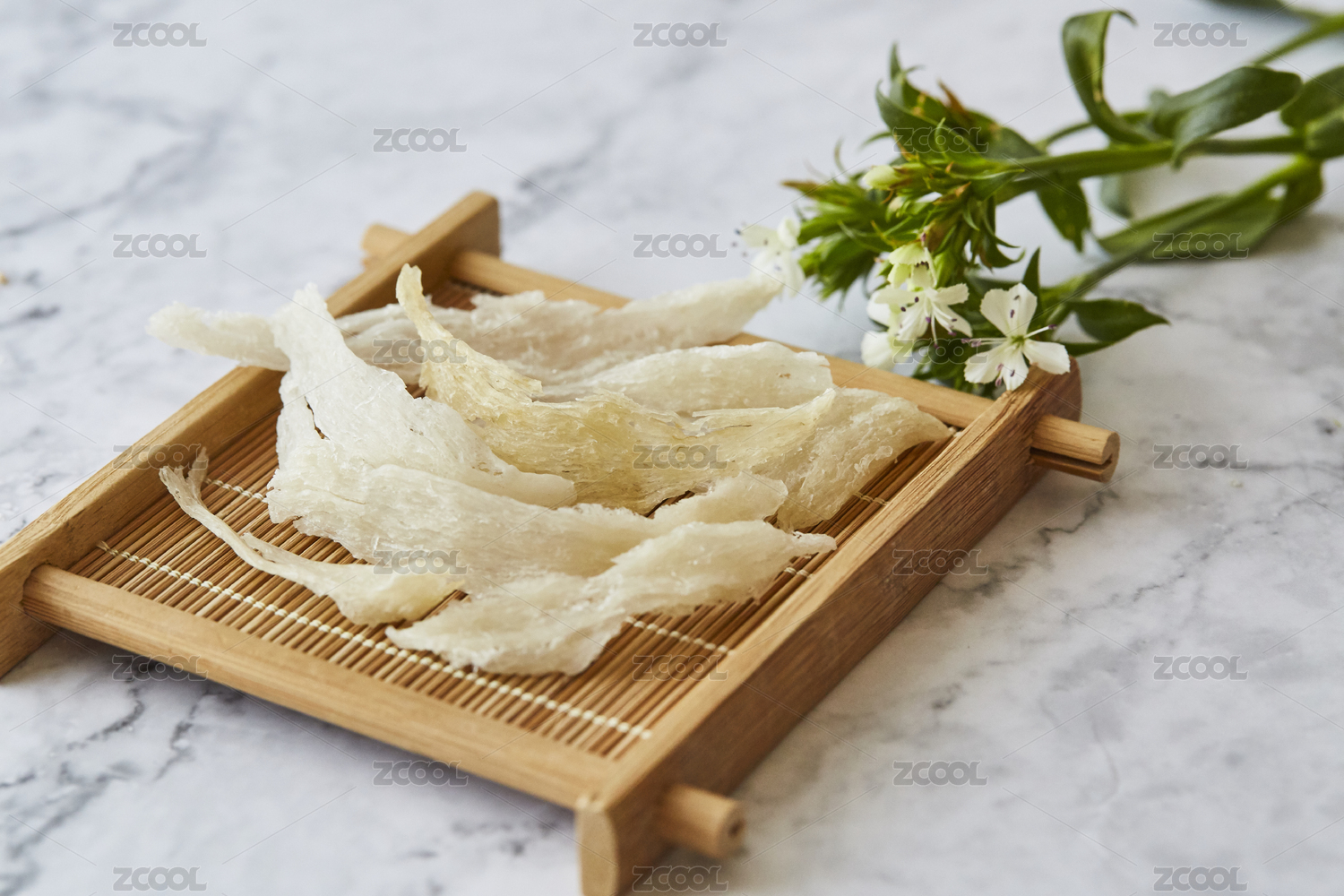 清新風(fēng)格竹質(zhì)托盤上的大燕條碎燕條
