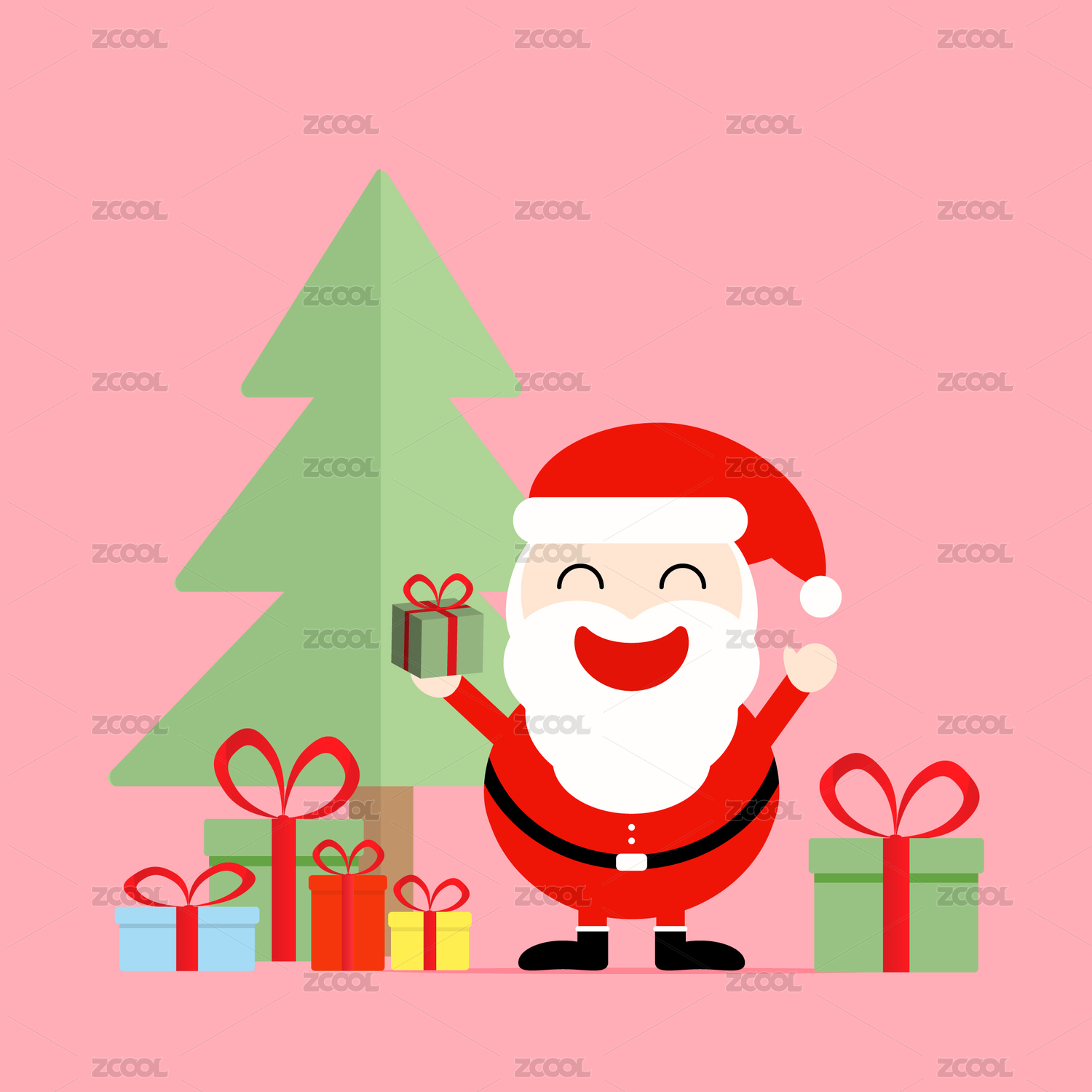 卡通矢量可更改圣誕節(jié)胖胖老人禮物盒樹可愛