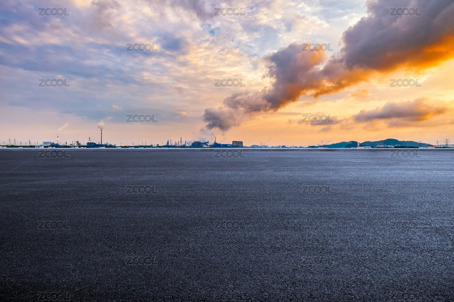 瀝青道路和石化廠工業(yè)區(qū)景觀