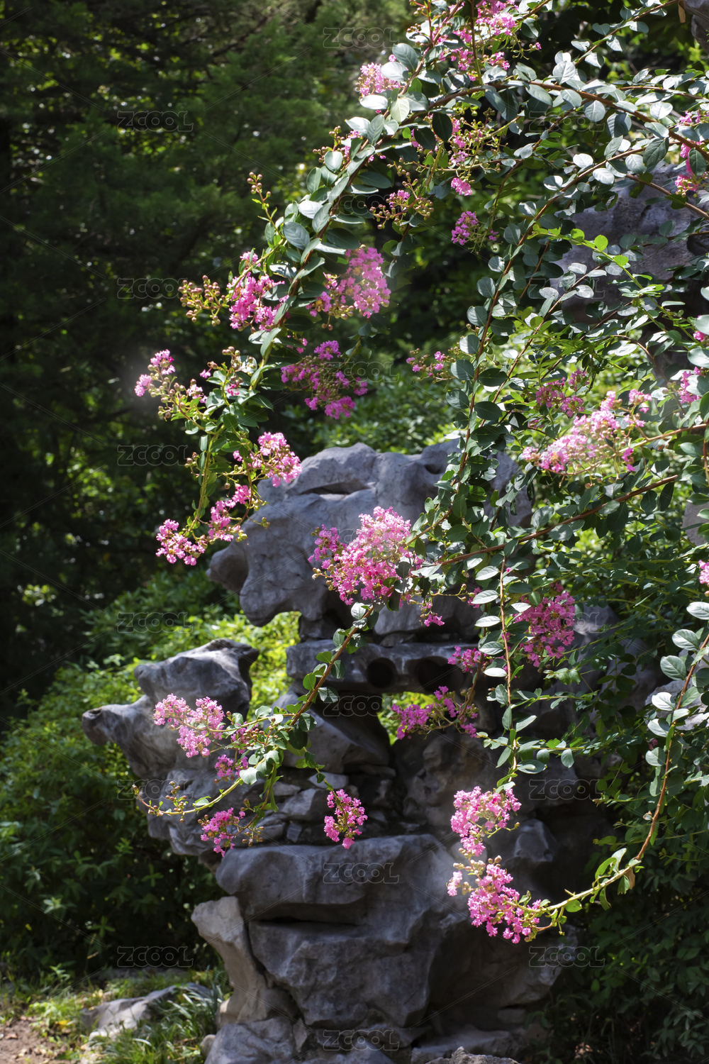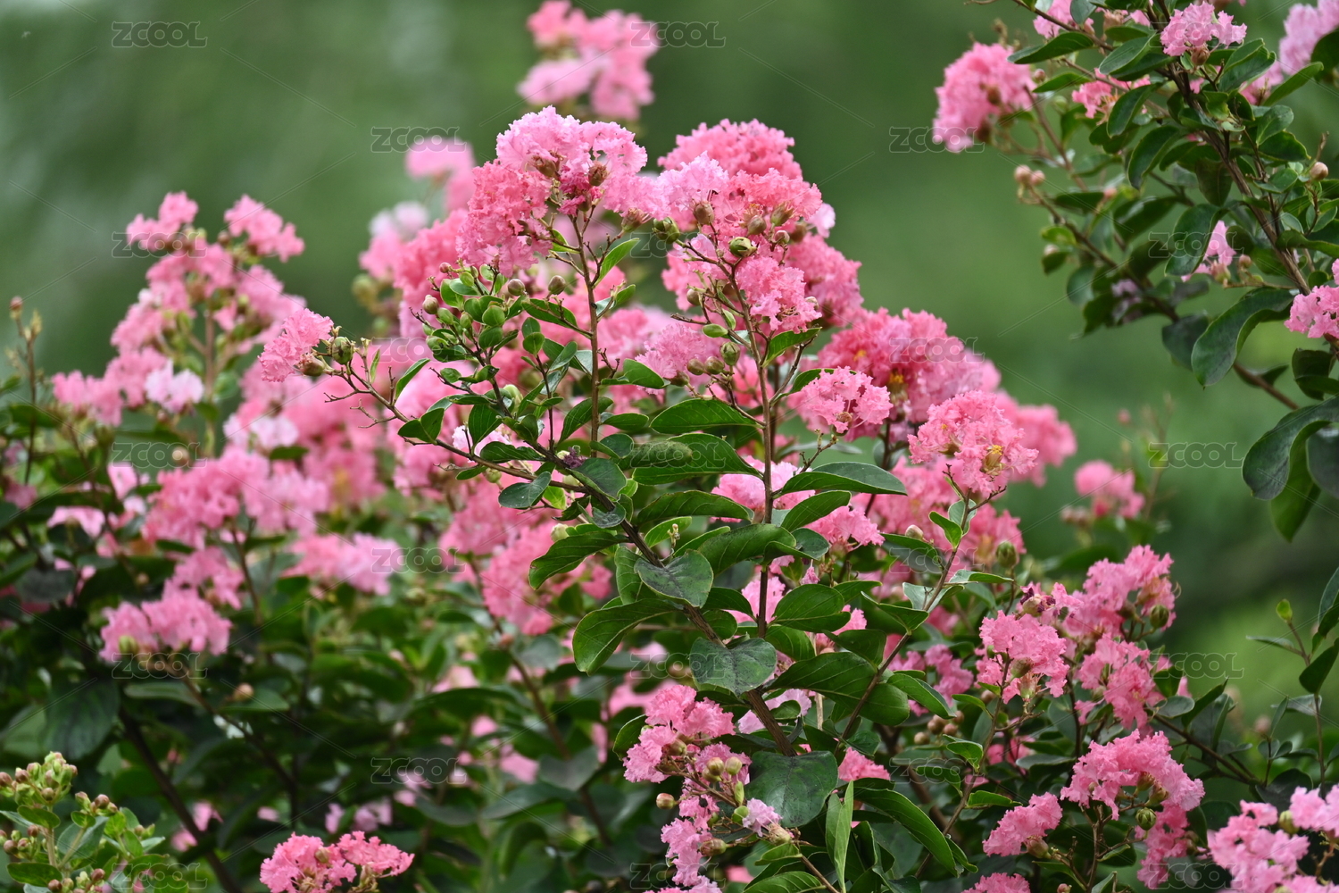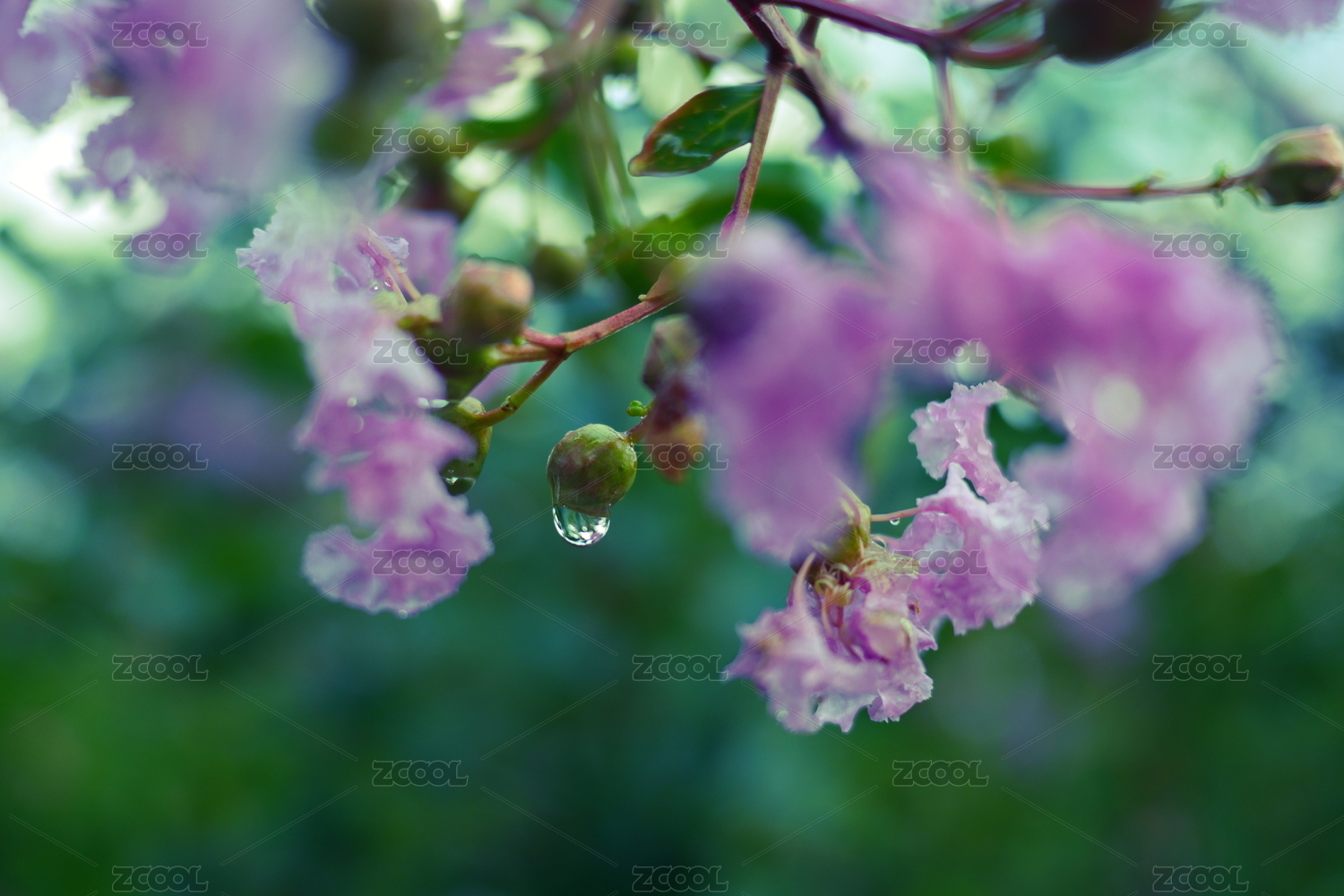 夏天雨后公園里盛開的紫薇花