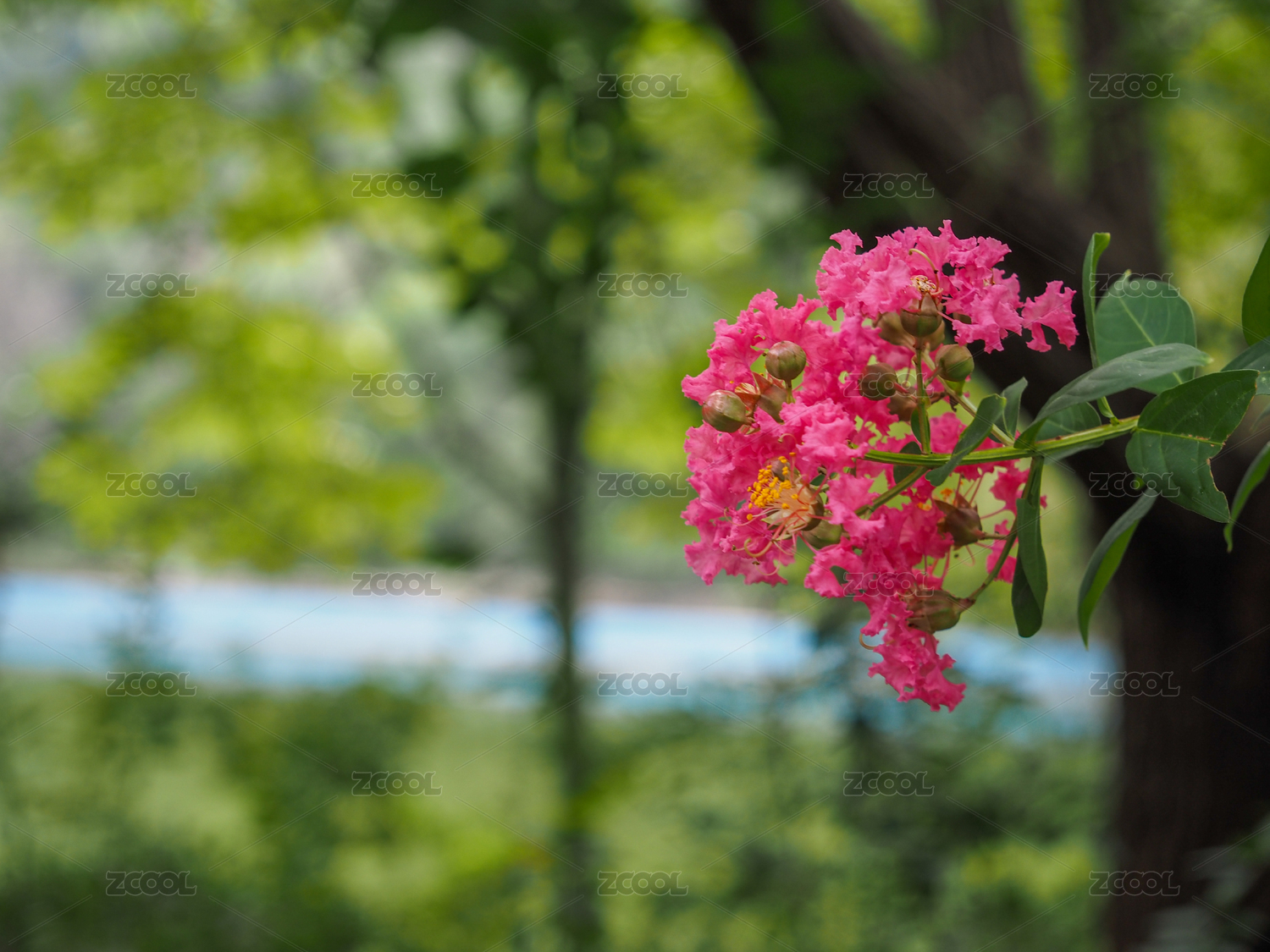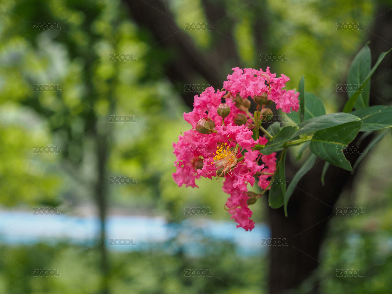 夏天公園盛開的紫薇花