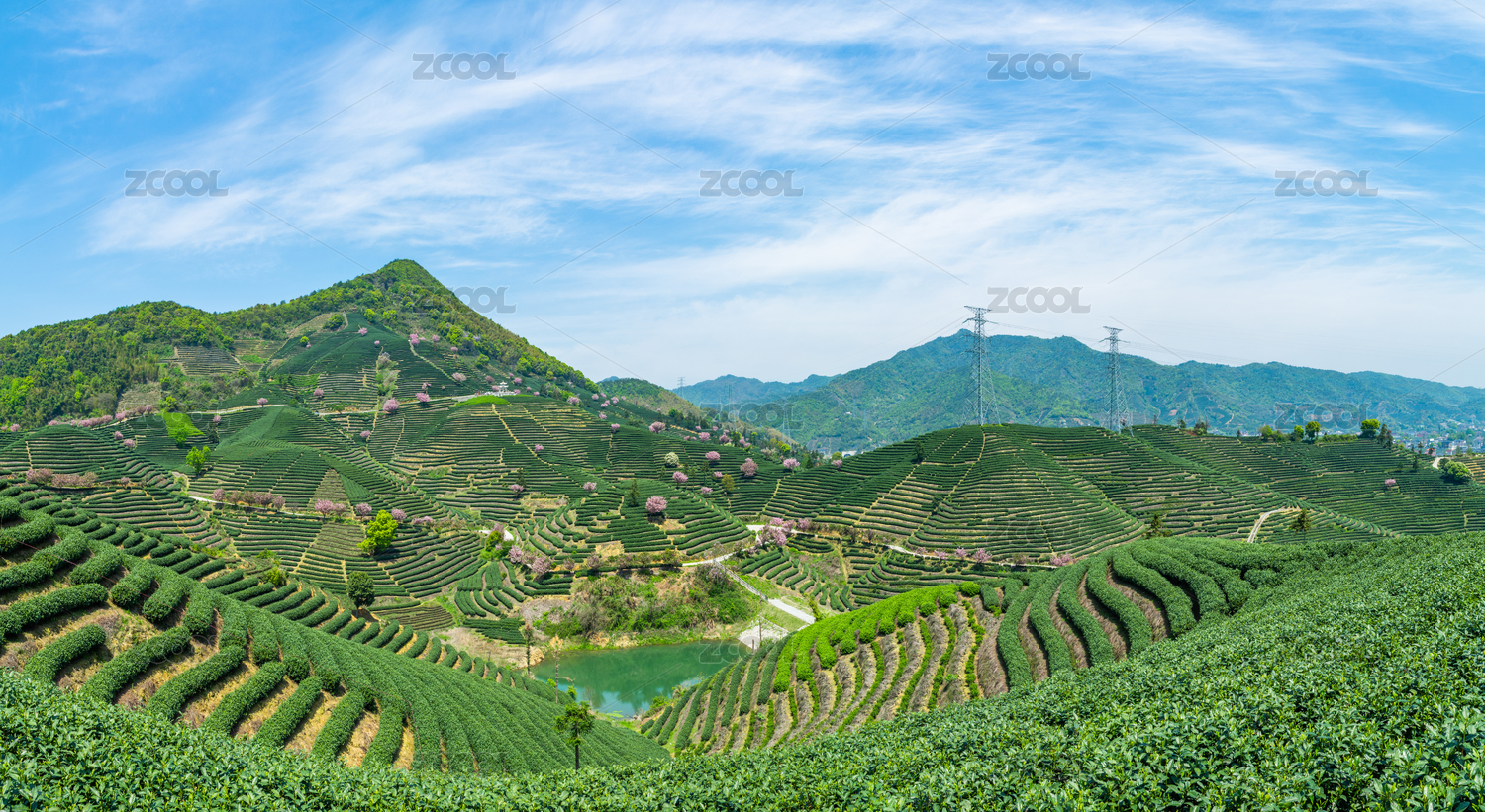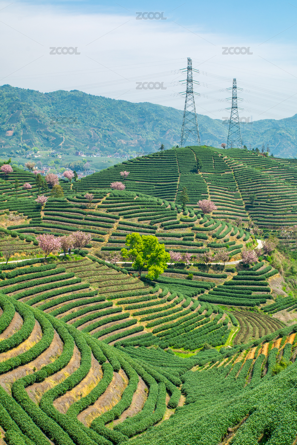 浙江杭州富陽拔山茶園與高壓電塔