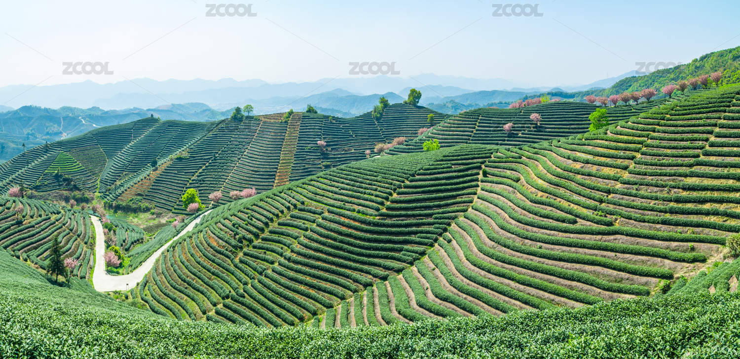 浙江杭州富陽山地茶園春景