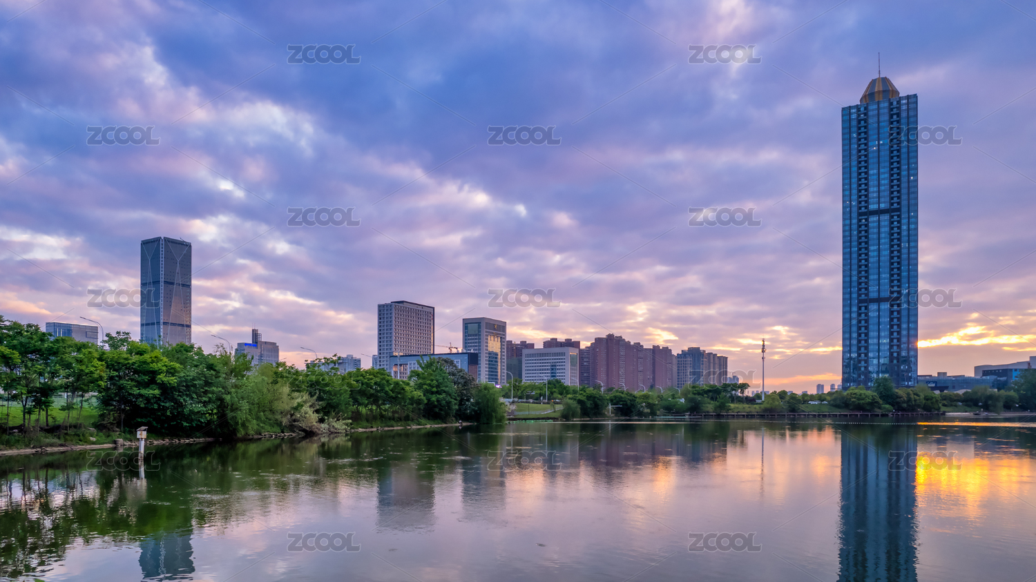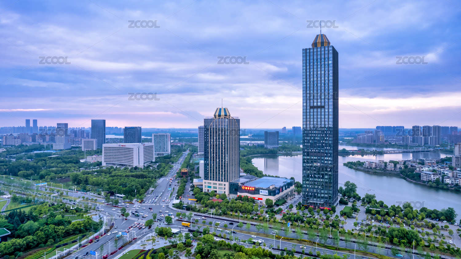 清晨武漢金銀湖邊的歐亞廣場寫字樓