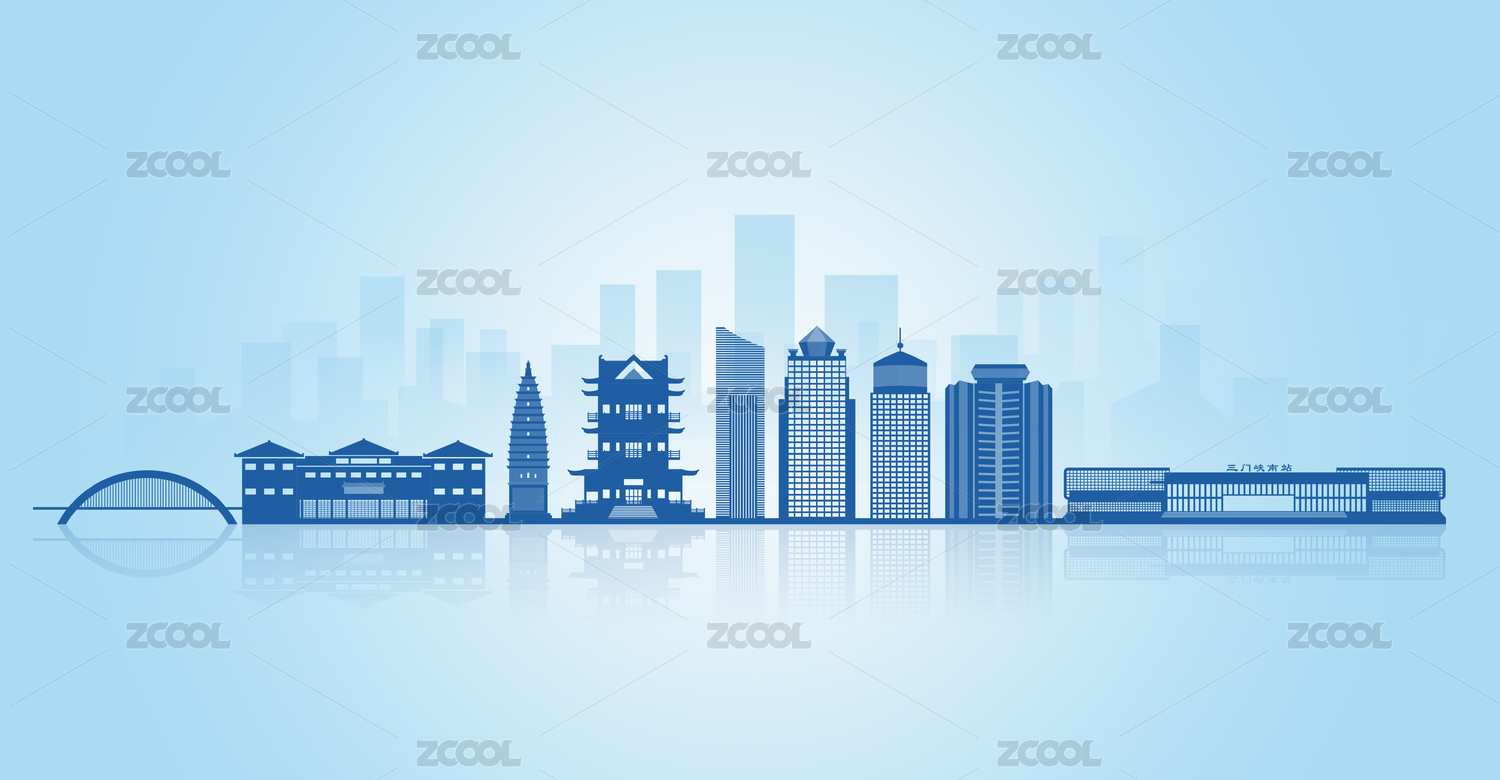 中國(guó)河南省三門峽市地標(biāo)建筑剪影天際線背景