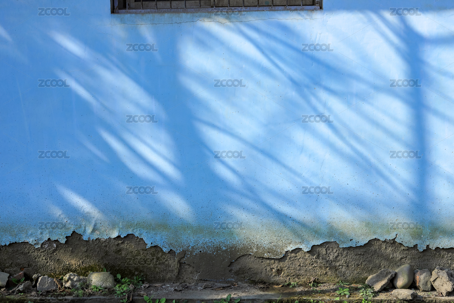 陽光照射下的藍(lán)色墻