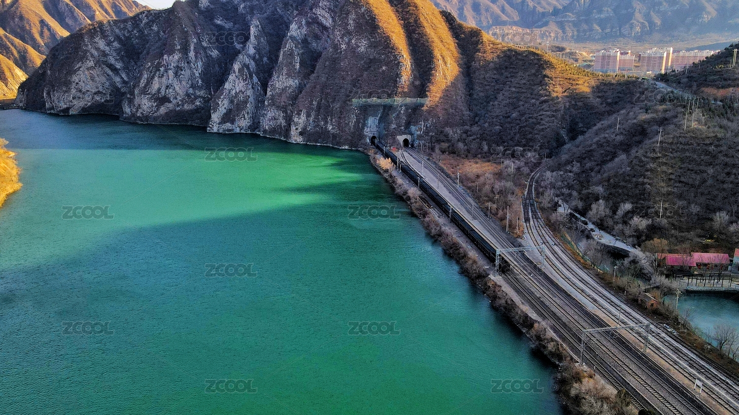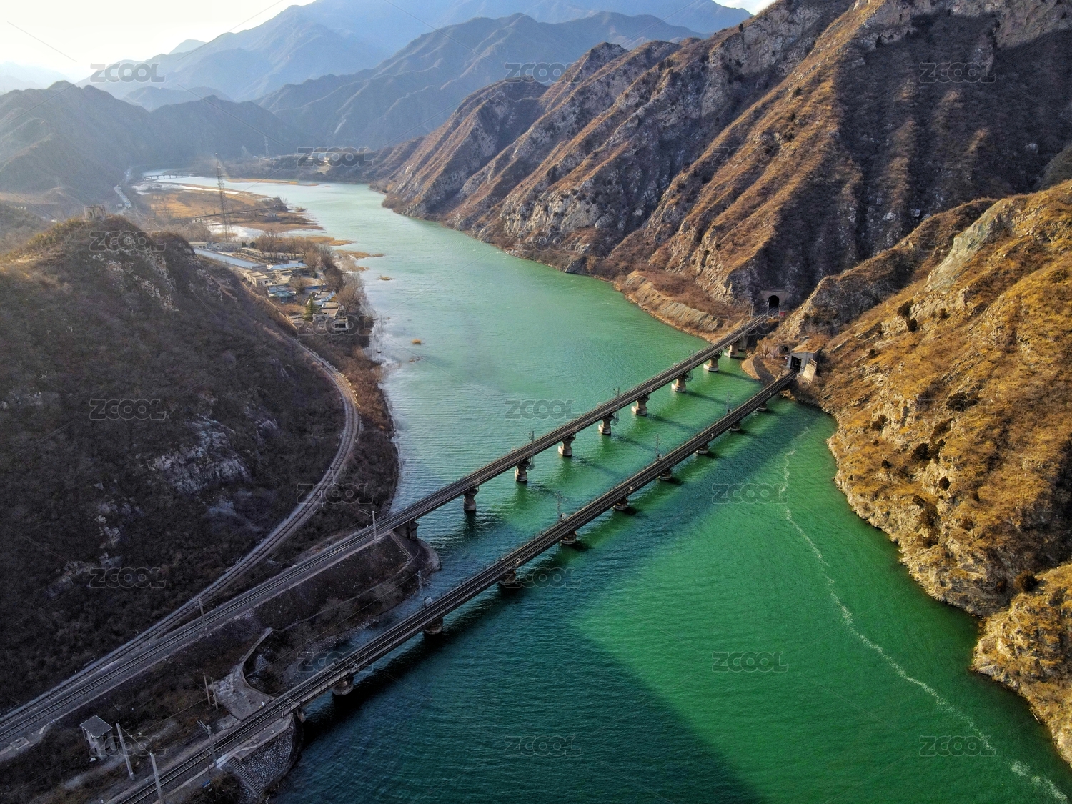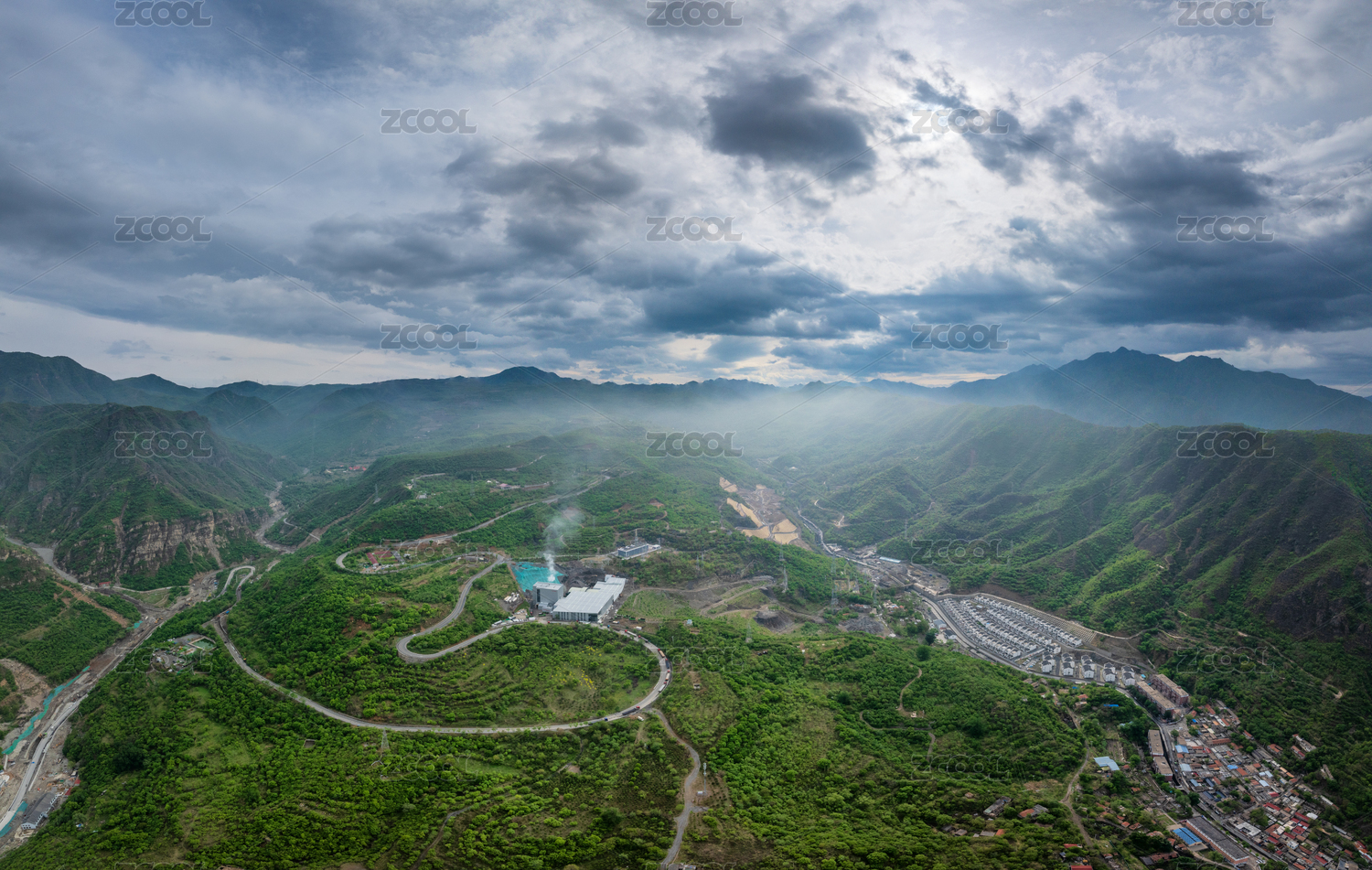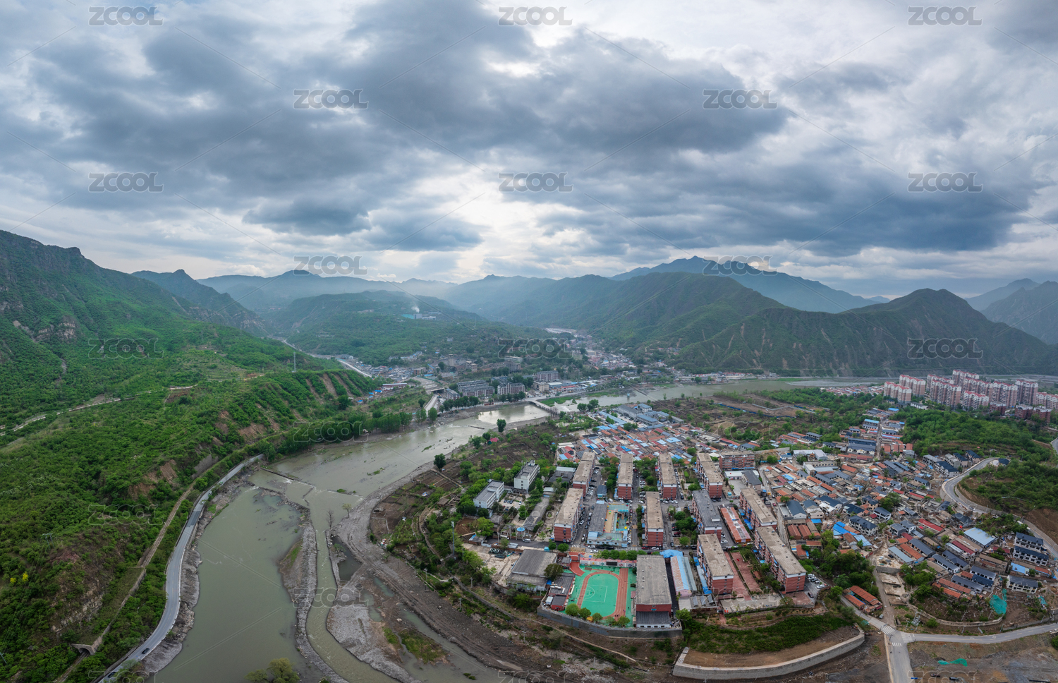 航拍北京門頭溝王平鎮(zhèn)山區(qū)與永定河