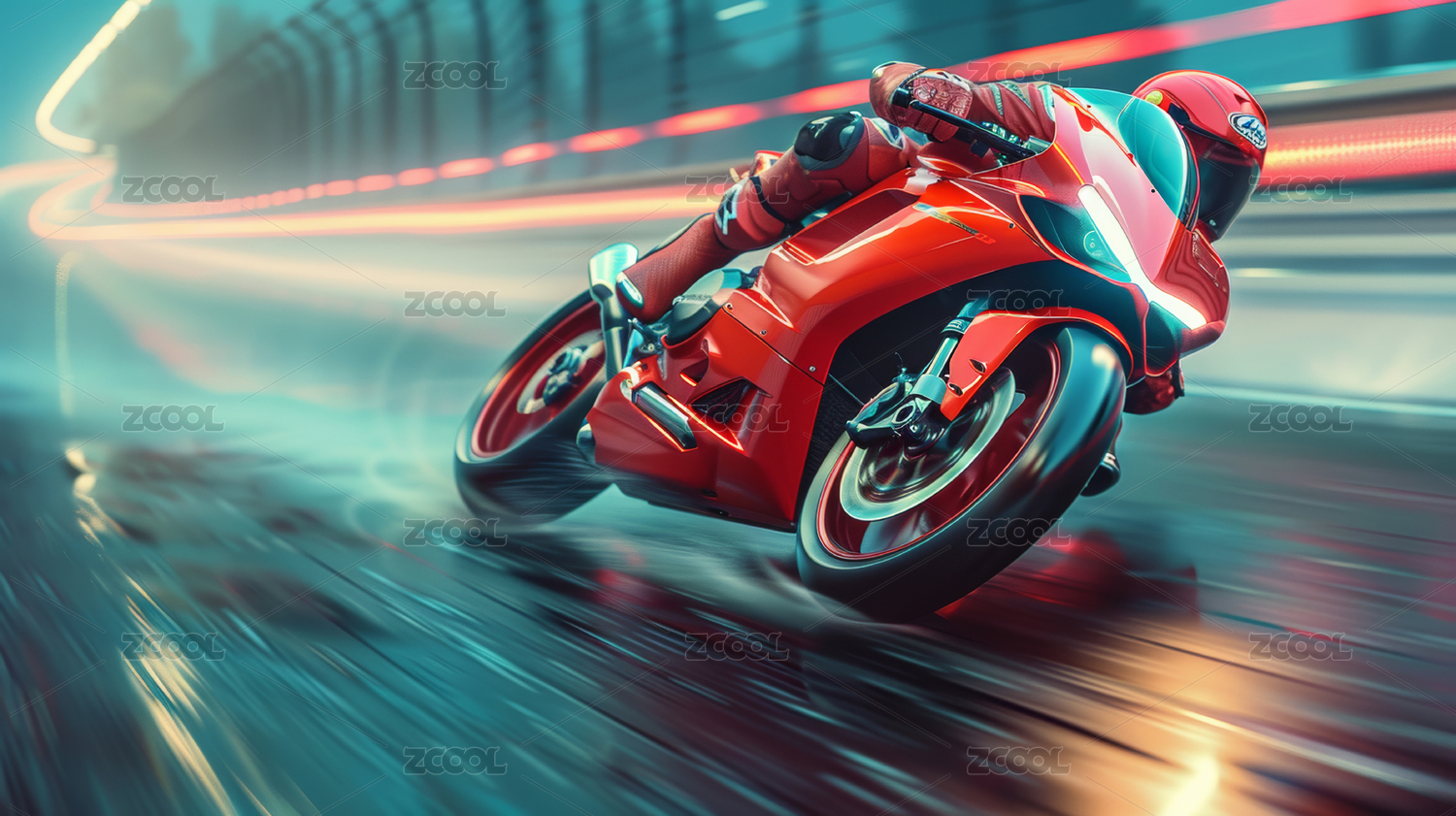 紅色摩托車在賽道上快速行駛