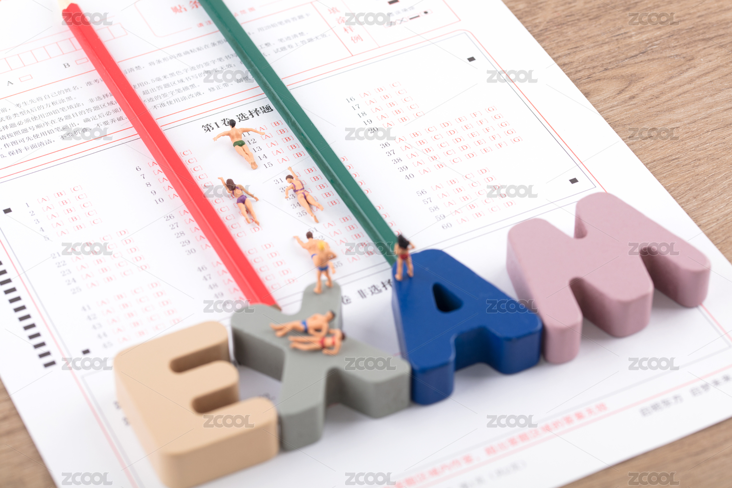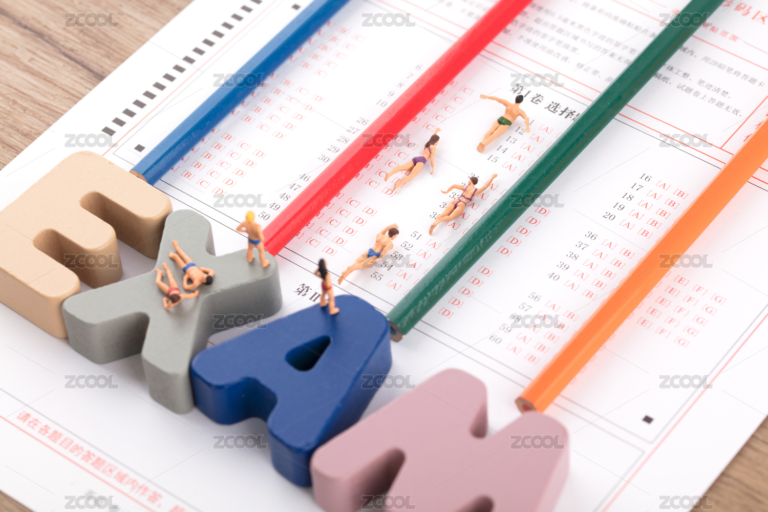 多名運(yùn)動(dòng)員在答題卡賽道上進(jìn)行跨欄跑步比賽